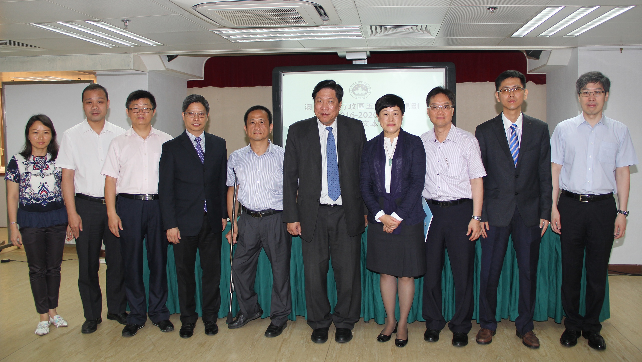政策研究室主任劉本立及相關研究人員在今日(6月7日)上午應邀到澳門中華教育會禮堂,出席由澳門中華教育會主辦的《澳門特別行政區五年發展規劃(2016-2020年)草案文本》座談會,簡介草案文本內容並和與會者進行互動交流。