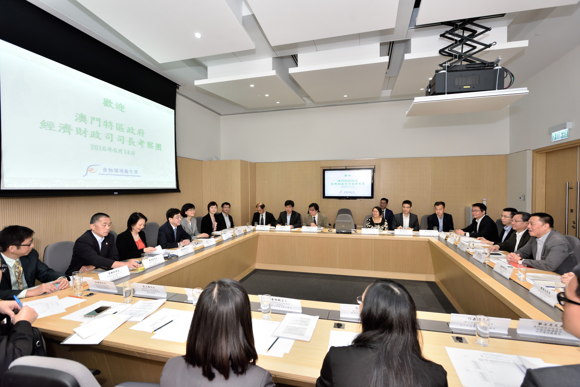 經濟財政司梁維特司長日前率團前往香港考察,了解當地的飲食場所發牌制度,聽取港方相關工作的成功經驗,期間實地考察兩家食肆的發牌檢查過程,希望以香港的成功經驗作為澳門完善相關發牌制度的參考。代表團抵港後獲食物及衛生局局長高永文、常任秘書長謝凌潔貞女士、食物環境衛生署、消防處、屋宇署等多個部門主管熱情接待,並隨即進行業務交流。