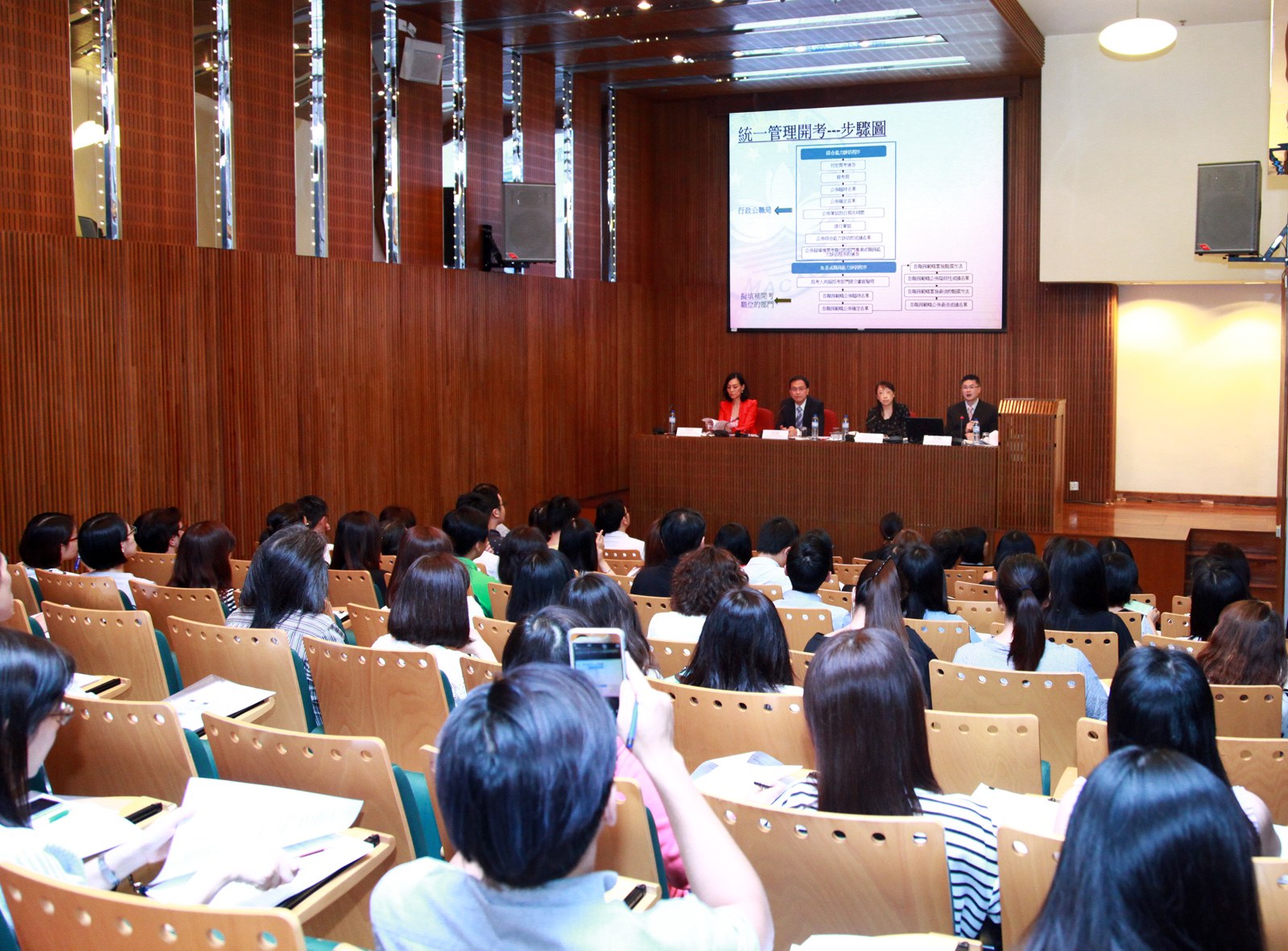 講解會由行政公職局局長高炳坤、副局長馮若儀、公務人員規劃及招聘廳廳長曾慶彬、以及公務人員培訓中心主任陳玉玲主持。講解會首部份先對統一管理開考及晉級培訓的規定和程序作詳細解釋,其後回答與會者的提問。