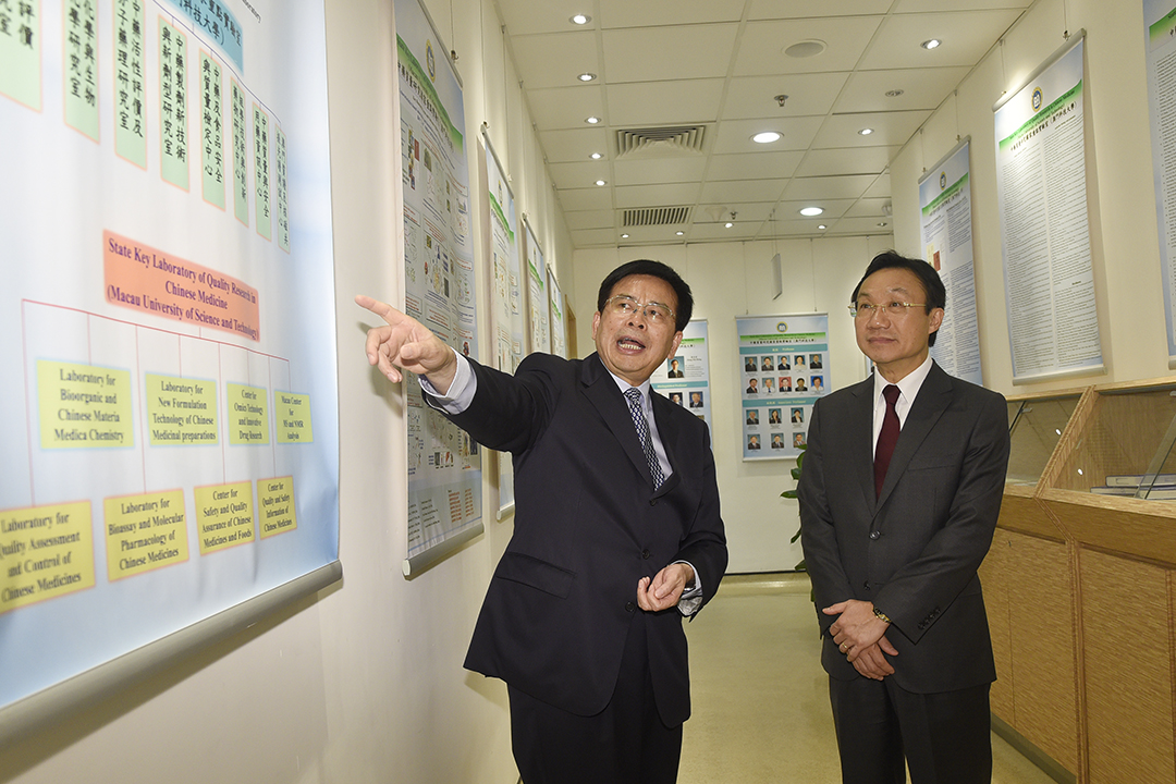 會談後,譚俊榮司長一行在劉良校長等陪同下考察了中藥質量研究國家重點實驗室(澳門科技大學伙伴實驗室)和澳科大廚藝餐廳“季節”,並聽取介紹人文藝術學院金木工設計實驗室和陶藝實驗室之概況,譚俊榮對中藥質量研究國家重點實驗室(澳門科技大學伙伴實驗室)的研究設施和水平,以及上述教學實驗室均給予充分肯定。