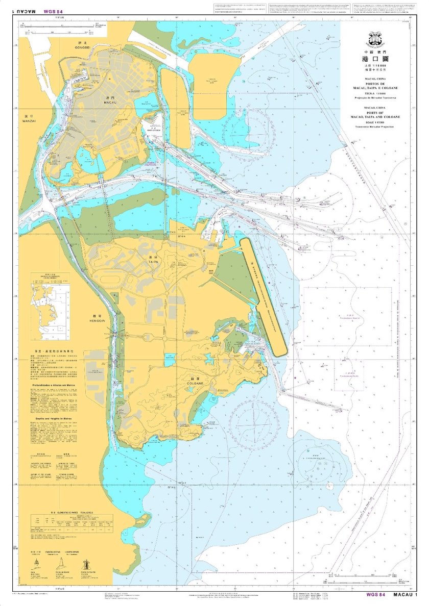 近年澳門快速發展,多項大型海上工程相繼展開,本澳的岸線、航道、航標和水深等均有所改變。根據中華人民共和國國務院令第665號,澳門特別行政區於2015年12月20日正式管理八十五平方公里的海域,海上界線由6個部分組成,包括內港段、路氹航道段、南部海域段、東部海域段、港珠澳大橋珠澳口岸人工島段以及澳門北部海域段。為了向往來船隻提供最新的航行資訊,保障海上交通安全,海事及水務局水文中心在海圖Macau 1第三版(2014年)之基礎上,於2015及2016年重新對澳門海域範圍內多個區域進行水深測量工作及水文數據分析,編制第四版《澳門港口圖》並更新了航行環境資料。