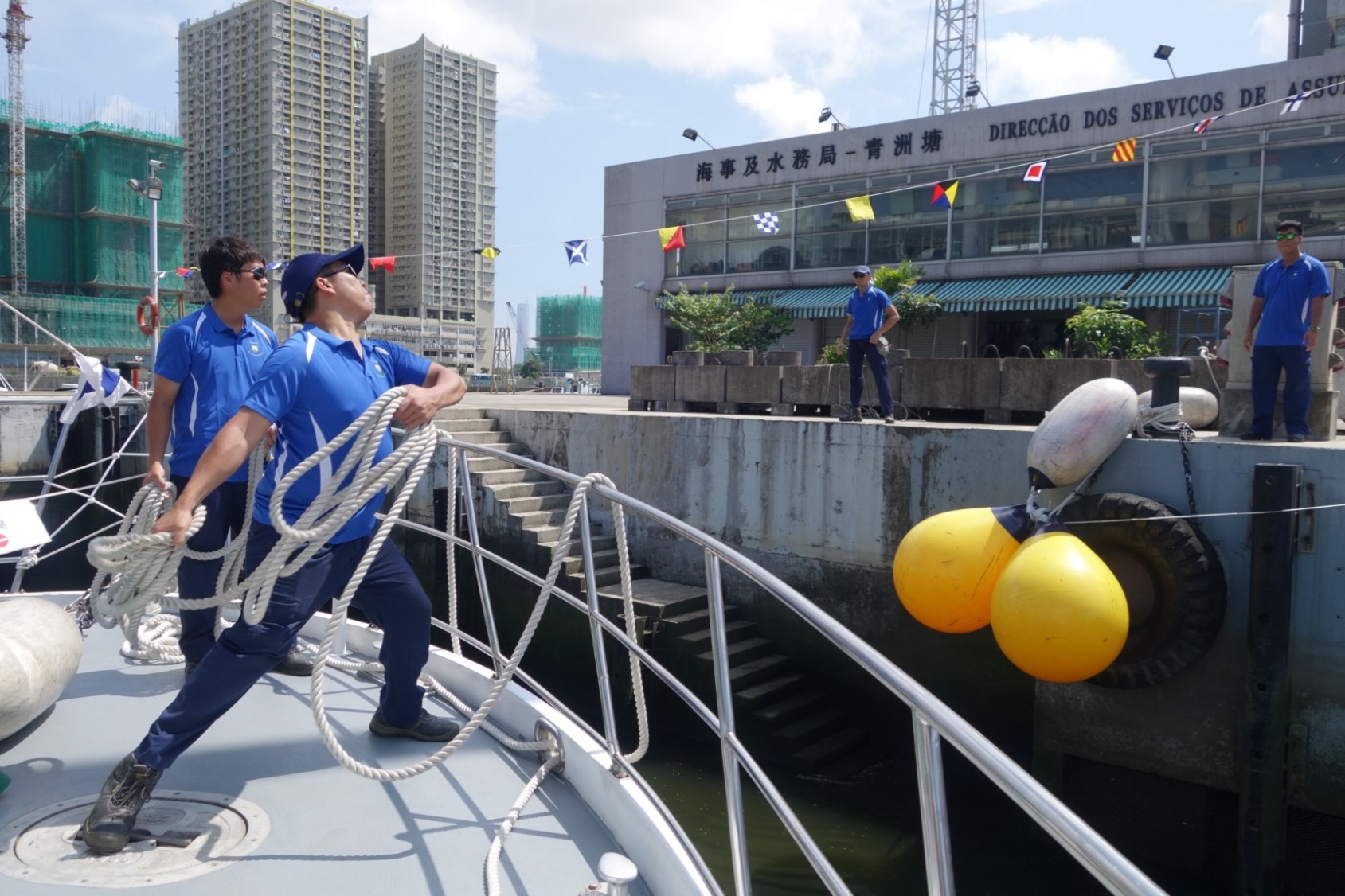 • 海事人員拋繩繫泊船隻讓市民安全登岸