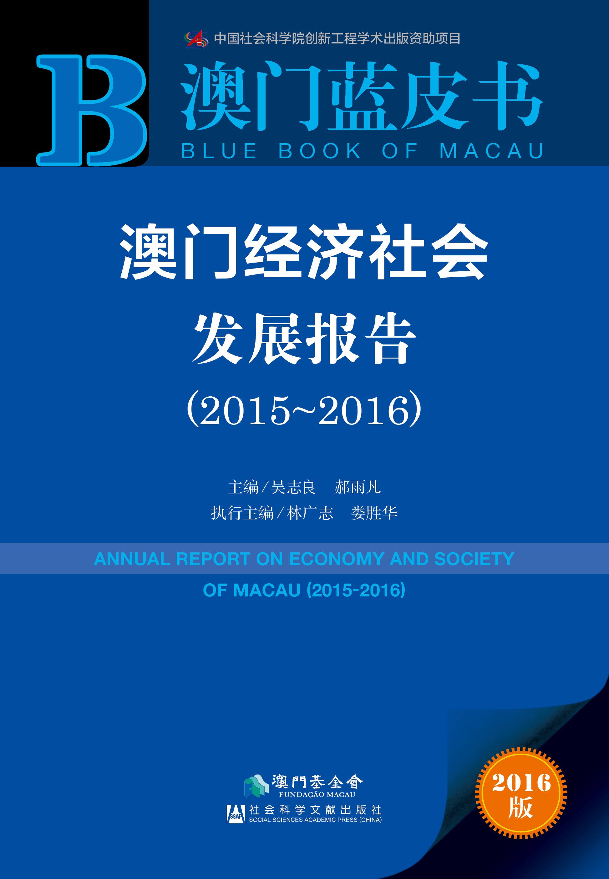 《澳門經濟社會發展報告(2015~2016)》(澳門藍皮書2016)經已由澳門基金會與社會科學文獻出版社聯合出版,並於全國及澳門地區同時發行。