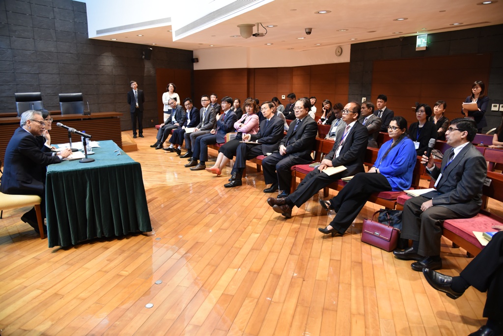 岑浩輝院長在終審法院會見了訪問團,並向他們介紹回歸後澳門特別行政區的司法制度,包括法院架構和管轄權,法院受理案件情況,出任法官的條件及法官的任免程序,法官和司法文員的管理機構、司法行政管理機構,以及各級法院辦事處的職能等。其後,岑院長還回答了嘉賓們的提問,詳細解答了有關如何保障司法獨立、統一司法見解和法院管轄權等方面的問題。