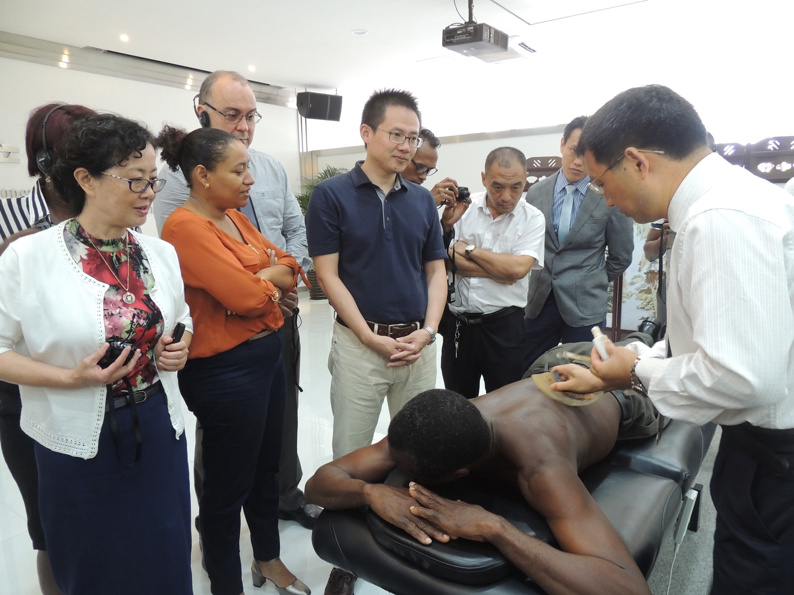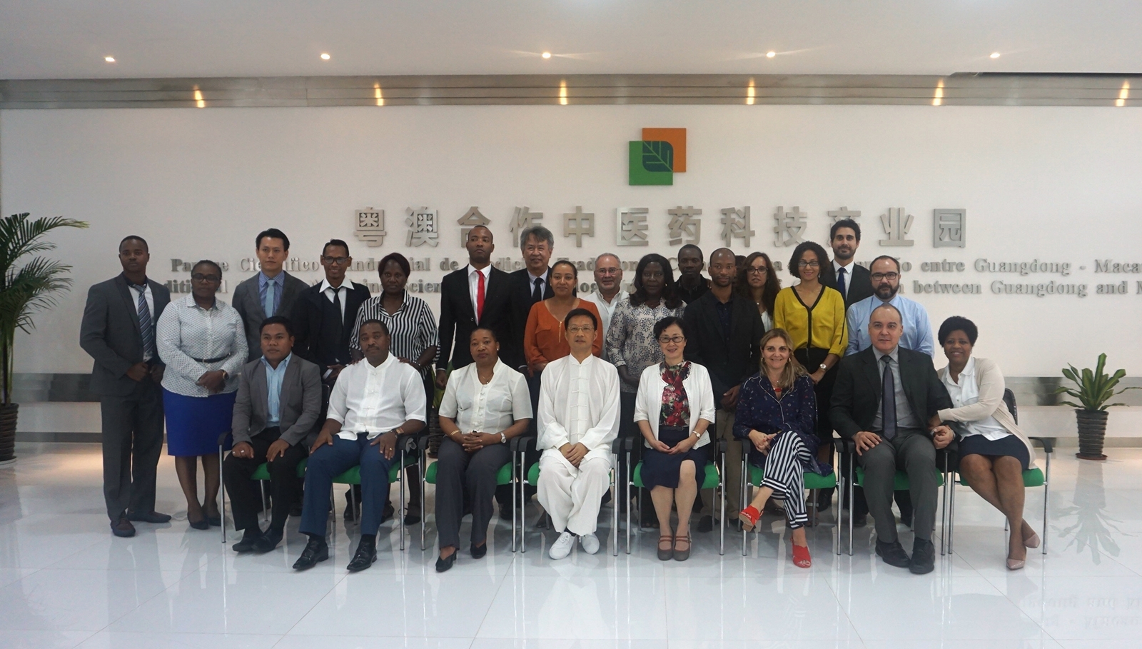 今(27)日,研修班學員一行人到訪產業園,參觀了產業園展示中心,了解了園區各版塊的功能佈局及產業園的工程建設現狀,並於產業園前期發展中心進行了課程培訓。廣東省名中醫、中山大學附屬第五醫院中西醫結合科主任醫師、產業園專家顧問師晶麗教授,廣州醫藥研究總院副院長覃仁安教授分別為學員講授了兩場“葡語系國家常見病之中醫預防與治療”的精彩課程。學員還在老師的帶領下,體驗了中醫針灸及太極拳。