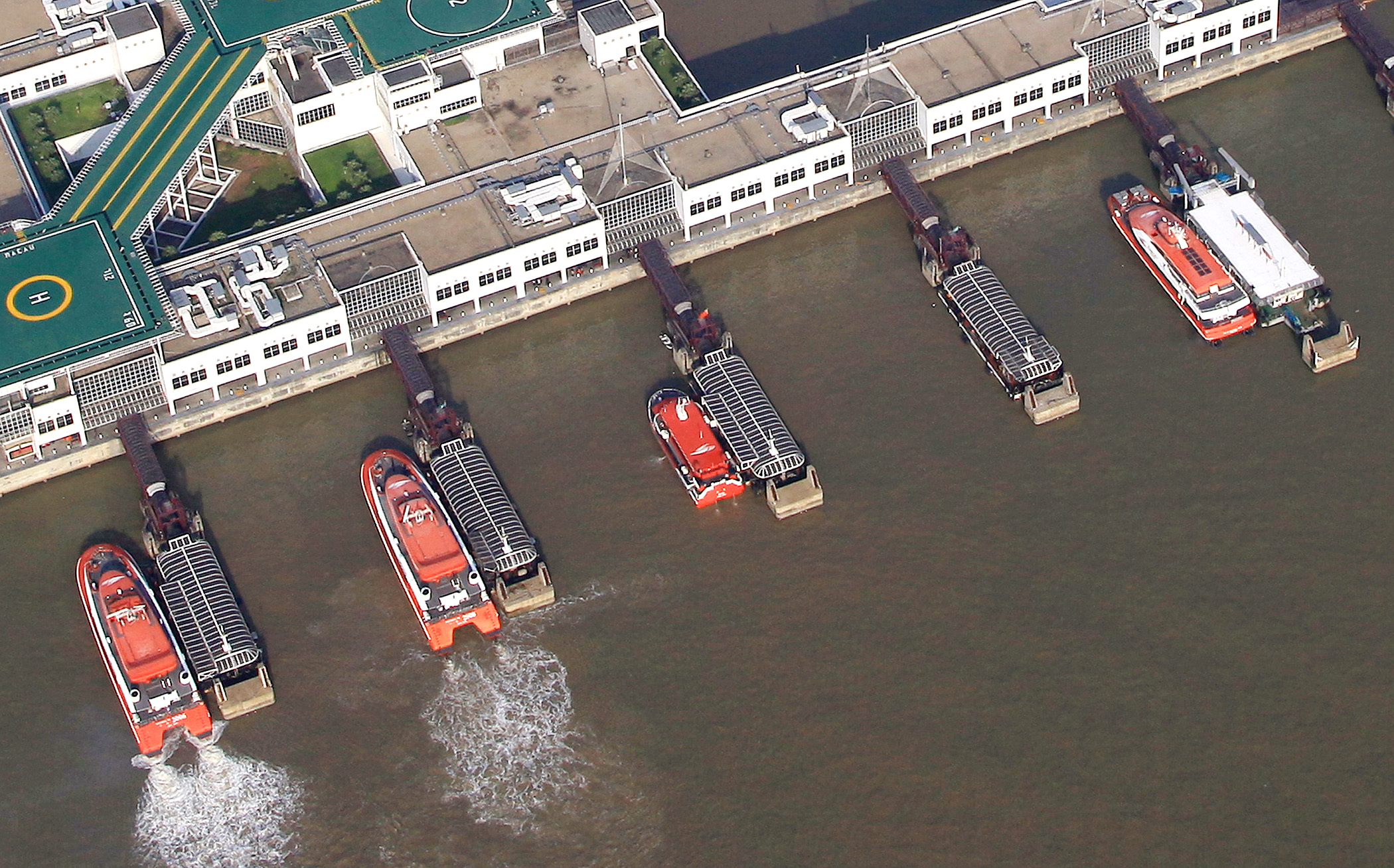 外港客運碼頭內供乘客上落船隻的6條登船橋已使用多年,有關設施逐漸老化。為保障市民和旅客安全,土地工務運輸局計劃於明年第一季展開登船橋更換工程,並加強登船橋的防滑和擋雨等效果,以確保其在良好狀態下運作及進一步完善有關設施。