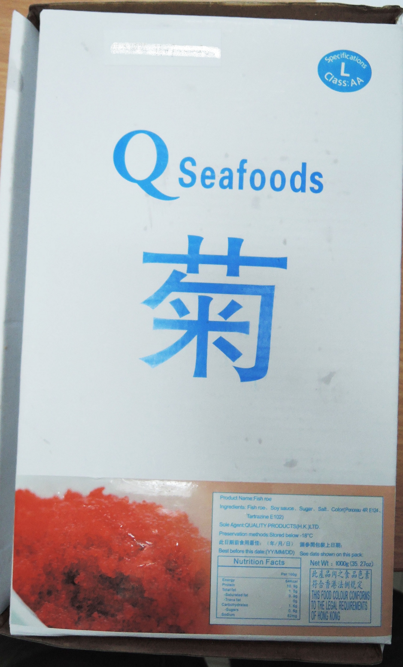 食安中心因應近期多次從壽司樣本檢出李斯特菌,除即時派員到懷疑涉事的店舖調查,亦根據店方提供的資料,到有關食品的供應商處進行跟進調查,並抽取食品樣本進行化驗。結果顯示,從一款名稱為“Q Seafoods菊Fish roe"的預包裝飛魚籽(蟹籽)抽取兩個批次的樣本中,同時檢出單核細胞增多性李斯特菌,其含量超出本澳《即食食品微生物含量指引》(GL 009 CSA 2015)之規定。受影響產品的批次有效日期為二○一八年二月二十四日及二○一八年四月十一日,包裝重量1000g(袋裝),產地為中國,並經香港進口本澳。