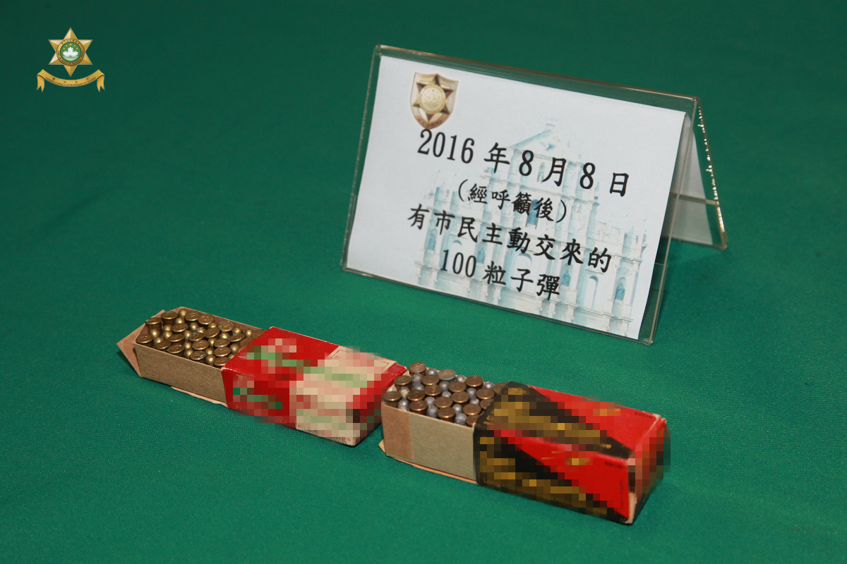 治安警察局自上周五接報上述案件後,隨即對外公佈並作出呼籲。有市民成功透過新聞報導得悉事件,並應局方呼籲,於8月8日上午10時許,主動將丈夫生前遺下的100枚陳舊子彈,交予局方處理。