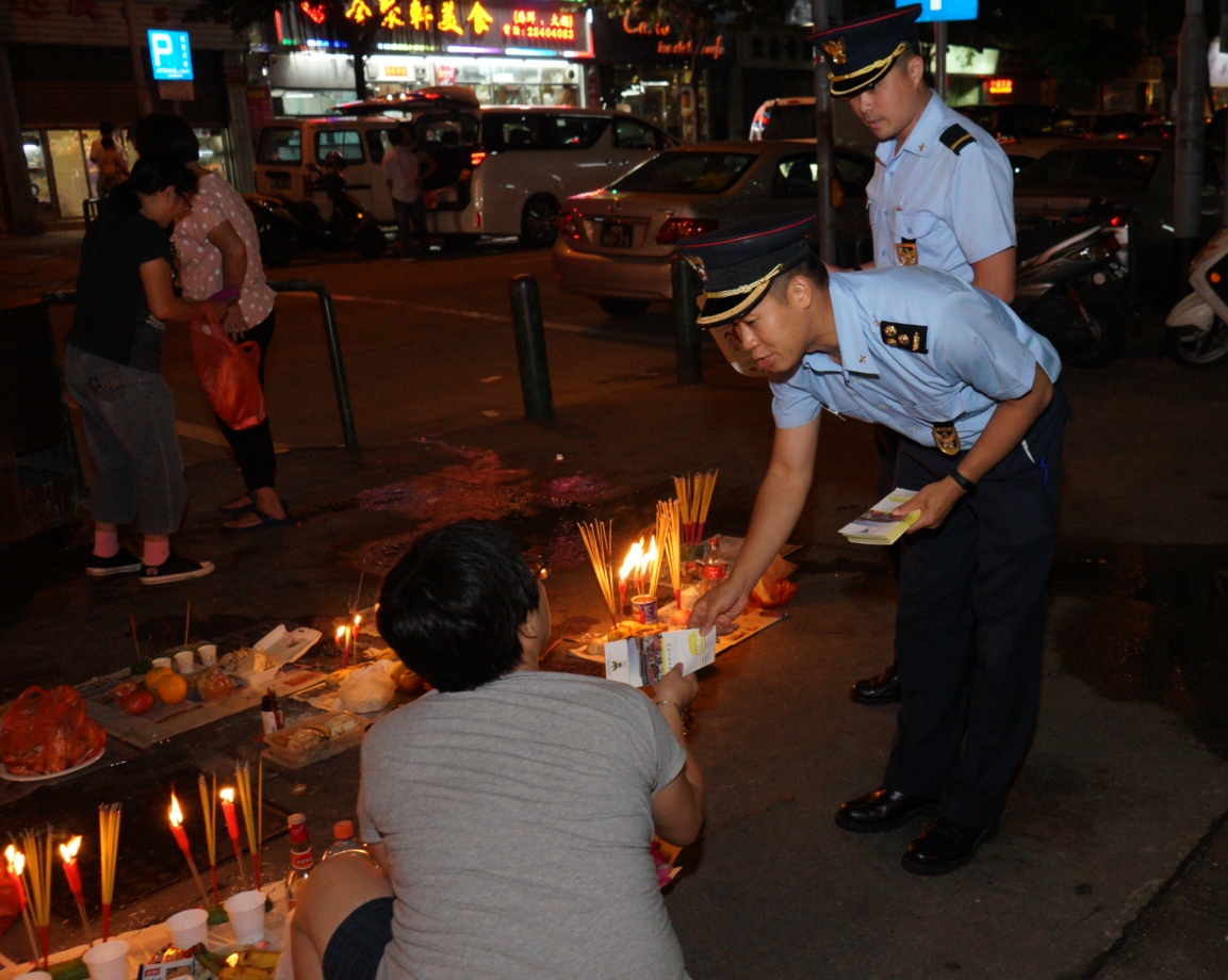 消防局一向重視傳統節日及火災風險較高日子的防火宣傳工作,為提高居民於盂蘭節期間的消防安全意識,消防局分別於7月29日、8月4日及10日派出官員拜訪“新口岸區坊眾聯誼會”、“望廈坊眾互助會”及“民眾建澳聯盟”,除就盂蘭節期間的防火工作及行動部署等方面交換意見,亦為“望廈坊眾互助會”及“民眾建澳聯盟”會員舉辦兩場防火、燃氣安全及救護知識講座,及後在義工的協助下到區內一帶向居民、遊客及商舖派發防火及切勿濫用救護車的宣傳單張及海報。本局將會於盂蘭節期間繼續深入社區,了解各區的防火工作,派員到各區派發宣傳單張及海報,以提醒居民於祭祀時必需注意防火安全。