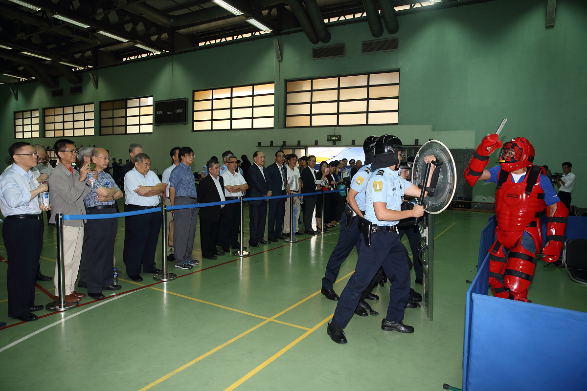 治安警察局首先在特警總部向來訪的立法議員一行介紹了該局的組織架構、警務、交通和出入境管理工作,匯報了關於今年4月30日本澳口岸出入境系統突發情況的處理,並進行了警方就群眾暴力事件和家庭暴力事件的應對演練,展示“特別巡邏組”近期的工作和訓練情況以及特殊警種裝備。隨後局方邀請了議員巡視關閘邊境站出入境大堂驗證櫃枱和控制台的日常運作,議員們對口岸進出人流管理與疏導,以及自助過關通道、學童專道和面容識別系統等設施對提升通關效率的作用,有了更深入的瞭解。