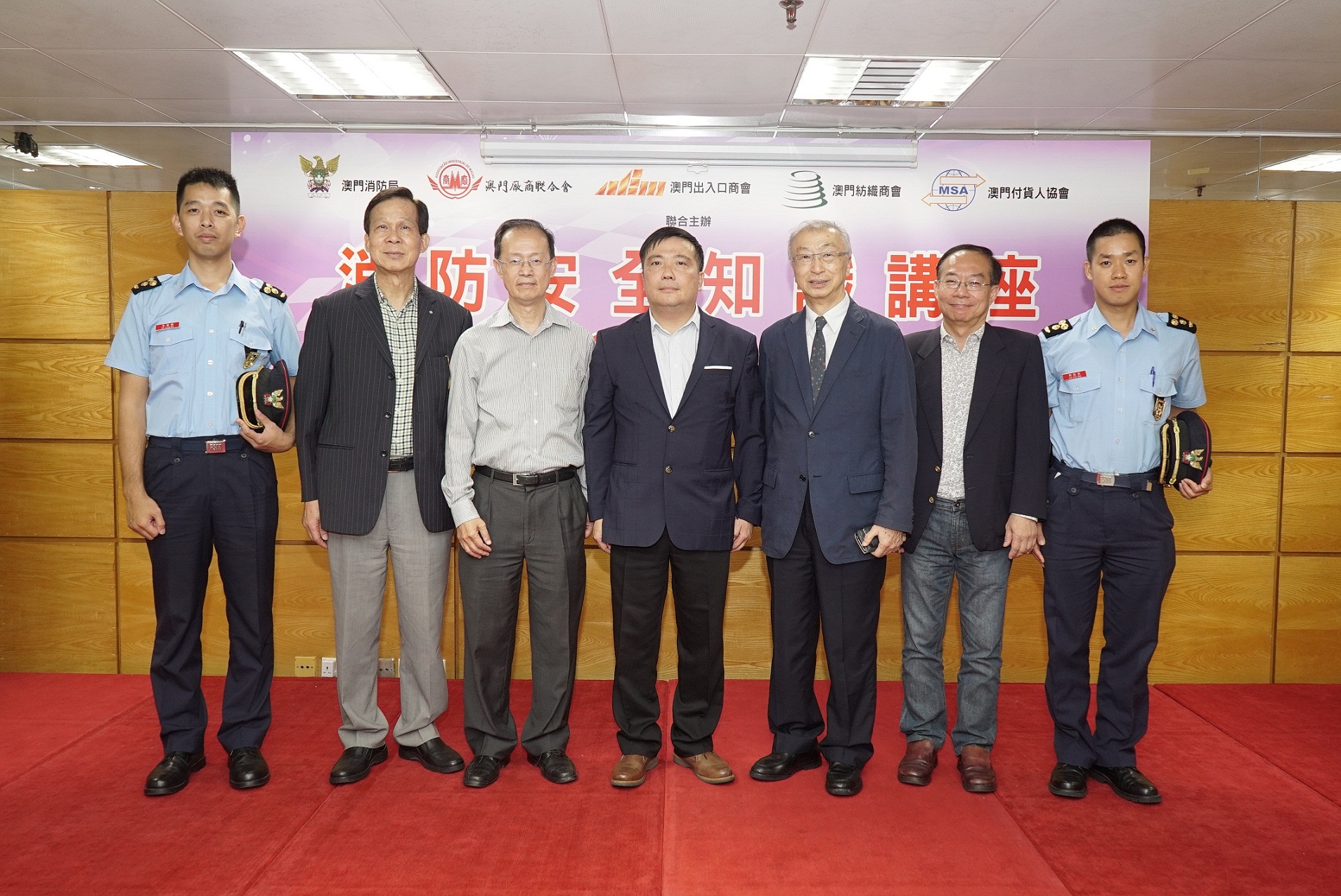 是次出席講座的主禮嘉賓包括消防局防火廳廳長區耀榮消防總長和澳門廠商聯合會副理事長李時泰先生,消防局官員以及各商會負責人等;消防局向出席商會代表頒發證明書,各方表示將繼續加強合作及合辦同類型講座,以提昇從業員防火安全意識,共同促進業界消防安全,營造澳門成為良好、優質生活城市。