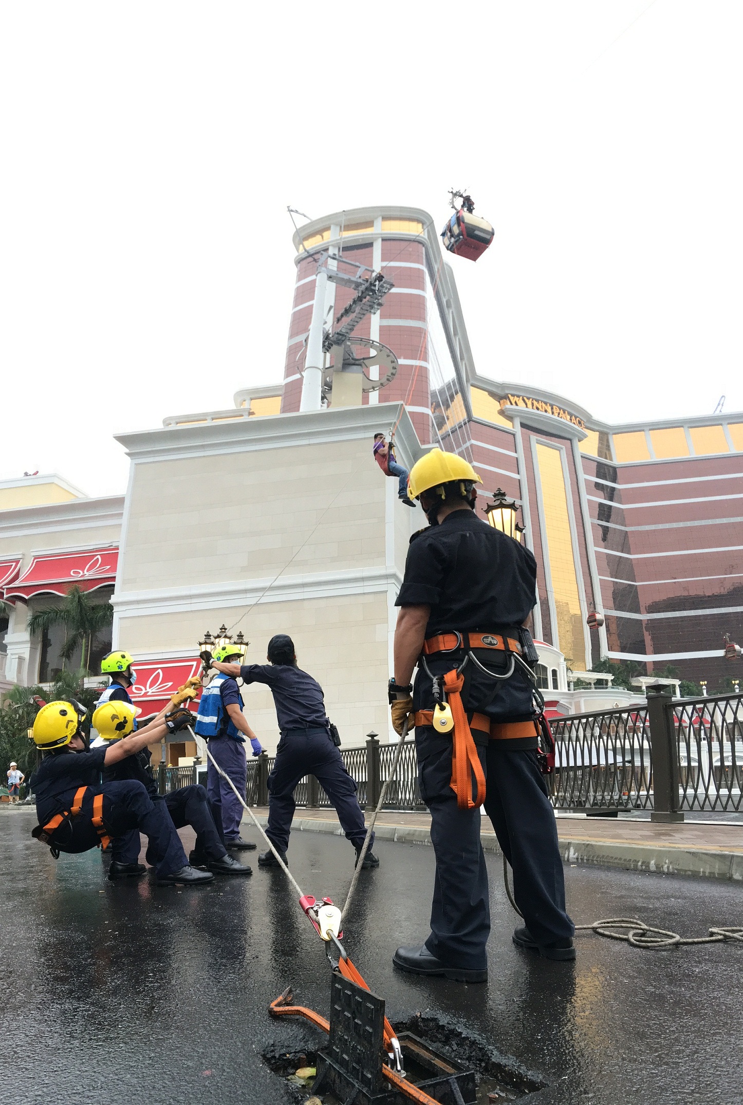 為加強消防局與永利皇宮在發生事故時的應變措施及協調溝通能力,消防局於本年8月12日上午,與永利皇宮聯合舉行了一次環湖纜車拯救演習。