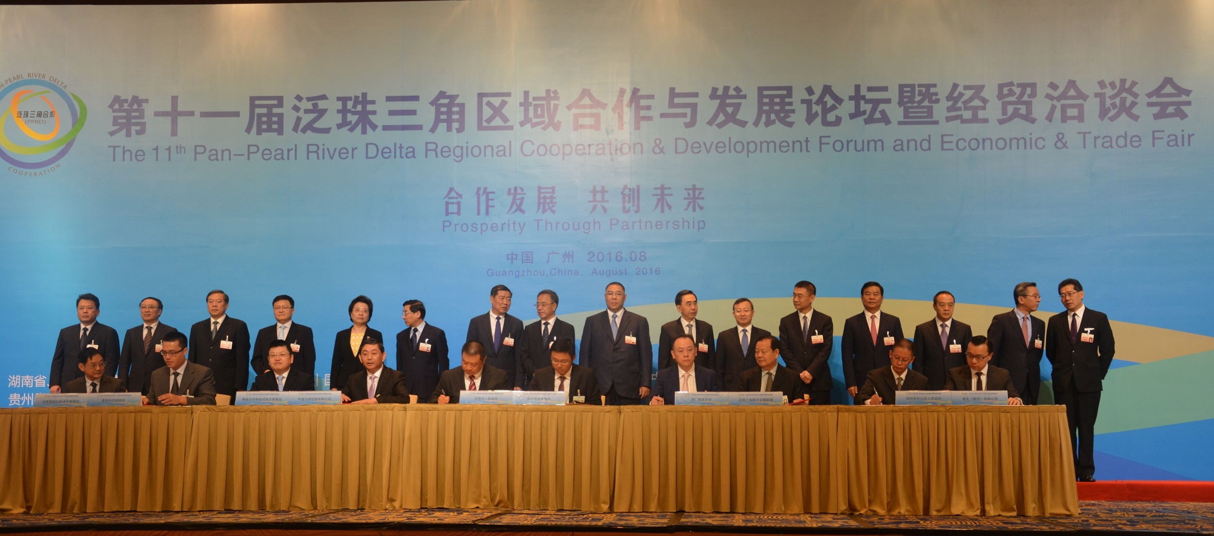 “第十一屆泛珠三角區域合作與發展論壇暨經貿洽談會”(泛珠大會)於8月25日舉行開幕式。澳方於開幕式後的合作項目集體簽約儀式上簽署2份涉及會展和“互聯網+”結合文化創意等範疇合作。