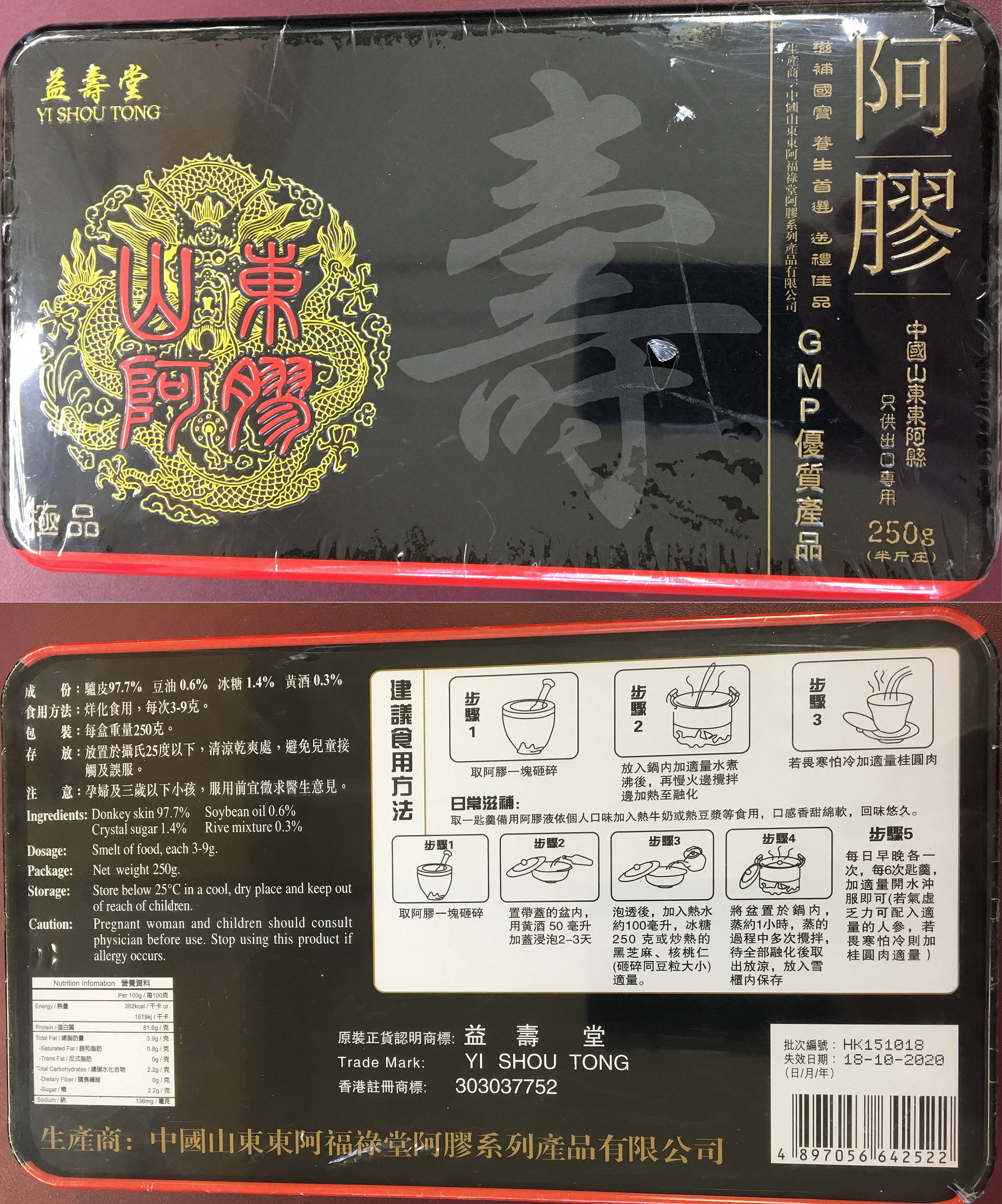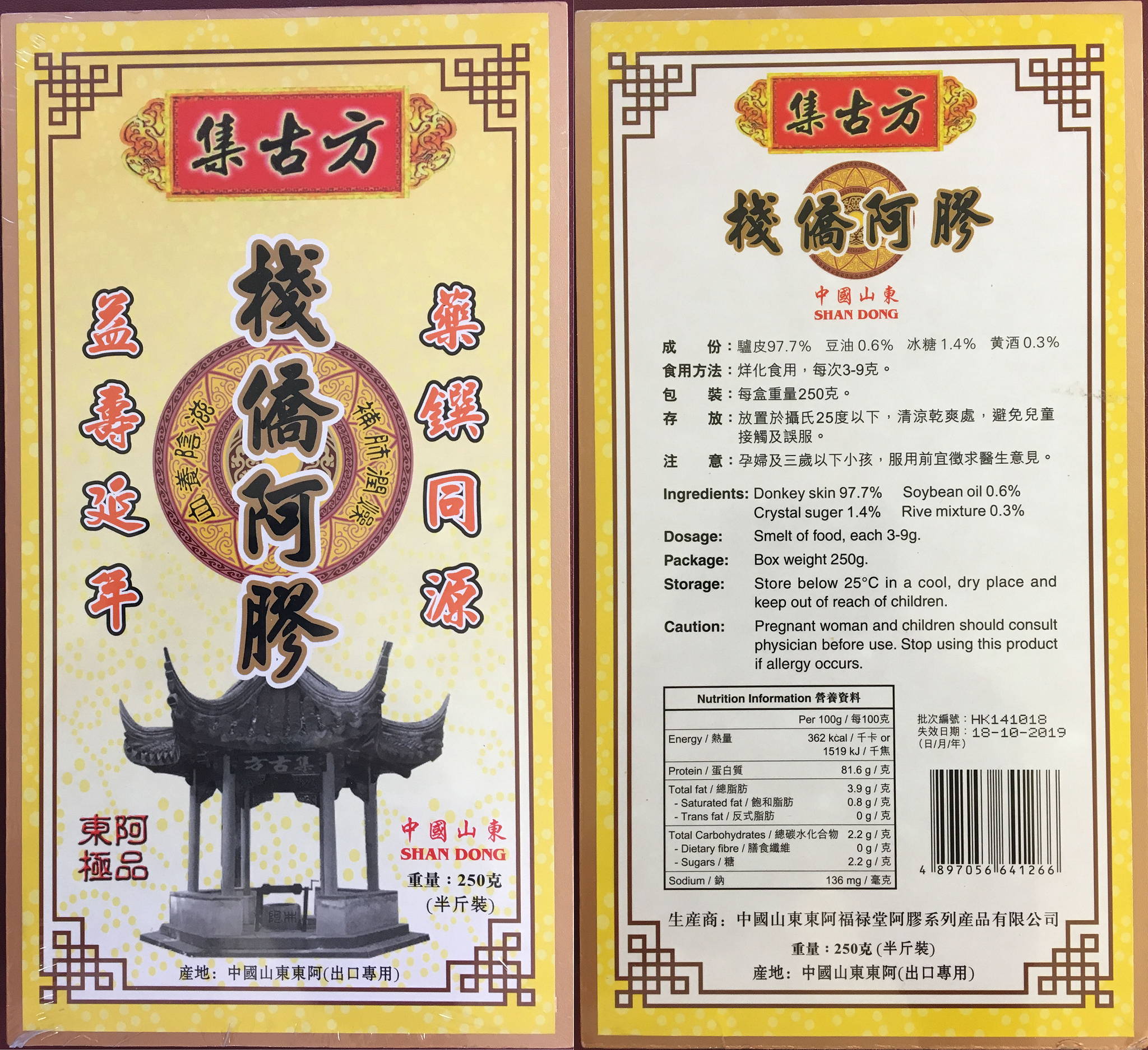 “阿膠”是由驢皮煎煮濃縮製成的產品,屬於澳門特區所用中藥材表第II部份的普通中藥材,功效為補血滋陰、潤燥、止血。根據國家相關標準的規定,“阿膠”不能摻有驢皮以外的動物成分,為保障公眾健康,衛生局已要求中藥房及有關的藥物出入口商回收上述問題批次的“阿膠”,並呼籲巿民停止使用該等批次的產品。此外,衛生局繼續對市面上的“阿膠”進行抽檢。