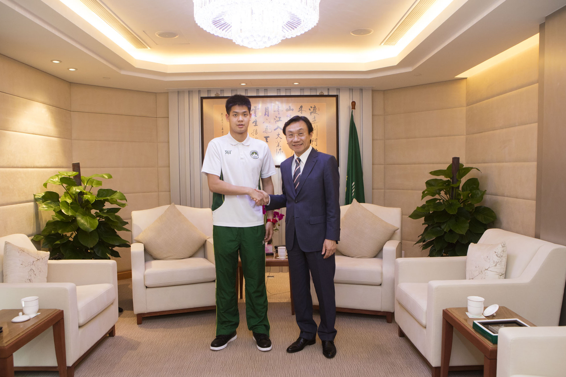 18嵗游泳運動員陳裕嘉,將參加本屆殘奧運動會男子200米自由泳及男子200米混合泳兩個項目的比賽。會見中,譚俊榮親切地詢問訓練和準備的情況,稱讚陳裕嘉的體格和運動精神,勉勵他全力以赴,力爭賽出最好的成績,為澳爭光。又關切澳門代表隊在里約期間,注意健康和安全,祝願行程一切順利 。