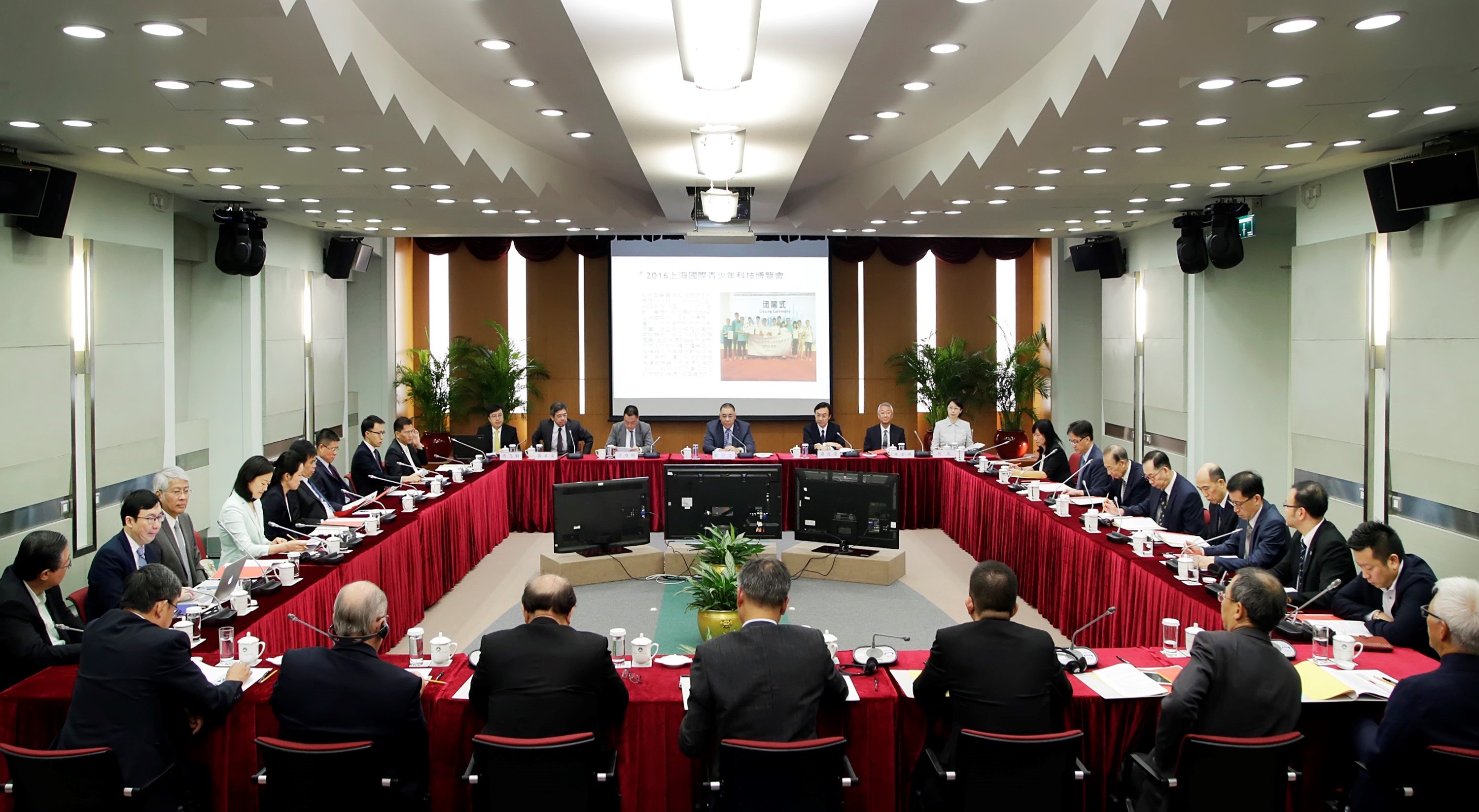 行政長官在會議開始時首先歡迎今年8月委任的19名委員參加會議。隨後,由科技發展基金活動輔助部梁寶鳳部長匯報了科委會年度工作報告,包括2016科技活動周暨科普成果展、教師科普考察團及學生科普夏令營、國家科技創新成就展的籌備情況等。有關科技活動周暨科普成果展,梁部長介紹該活動已於7月初成功舉行,是次主題為“智慧生活 – 我們的未來”,共約九千多參觀人次,基本達到了預期目的。至於教師科普考察團及學生科普夏令營,由科委會聯同科技基金於7、8月期間共同組織8個團,共309名澳門師生參加。有關國家科技創新成就展的籌備情況,特區政府邀請國家科學技術部協助安排國家“十二五”科技創新成就展之展品於本年10月初,假澳門威尼斯人金光會展展出。該活動由科技委員會主辦,科學技術發展基金承辦,展覽分為五個展區:1)實物及模型展區;2)互動體驗區;3)科普電影播放區;4)科普講座區;5)澳門科研成果區。