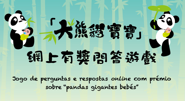 由民政總署及澳門大熊貓基金合辦的“大熊貓寶寶"網上有獎問答遊戲已圓滿結束,活動反應熱烈,共有三千三百八十九名市民正確回答問題並成功登記參加大抽獎。期望藉是次活動慶祝大熊貓寶寶 “健健” 和 “康康”的誕生,同時亦加強澳門市民瞭解生活在澳門的一對大熊貓及大熊貓寶寶的更多資訊。