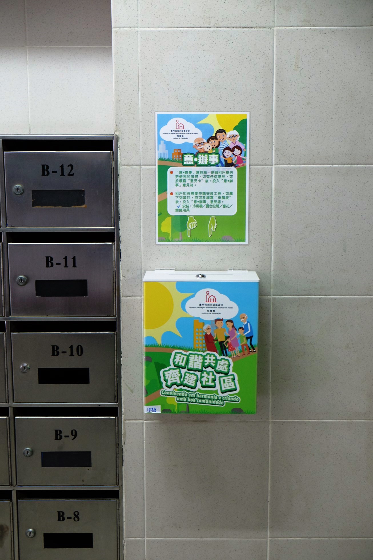房屋局一直關顧弱勢社群的居住訴求,持續優化公共房屋的硬件設施,日前於全澳各社會房屋屋邨大堂增設意見箱,收集租戶的意見及安裝工程申請。