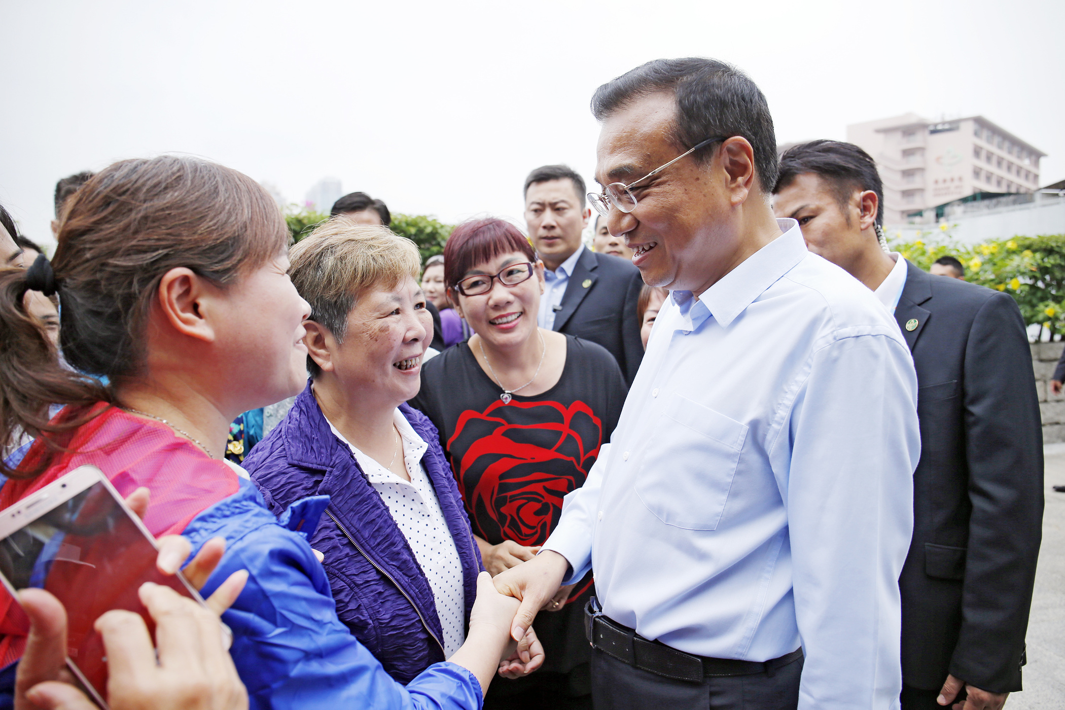 來到大三巴牌坊前,群情更洶湧,市民及遊客爭相與總理握手,並不住跟他合照,總理表現親切且樂意合作,雙方都露出滿意及高興的神情。總理又對在場記者表示,覺得澳門非常美麗,很有特色,是中西文化交匯的地方;更稱這裡曾是最早開放的門戶,將來會更開放,澳門會更好。他最後祝願澳門同胞幸福、安康。