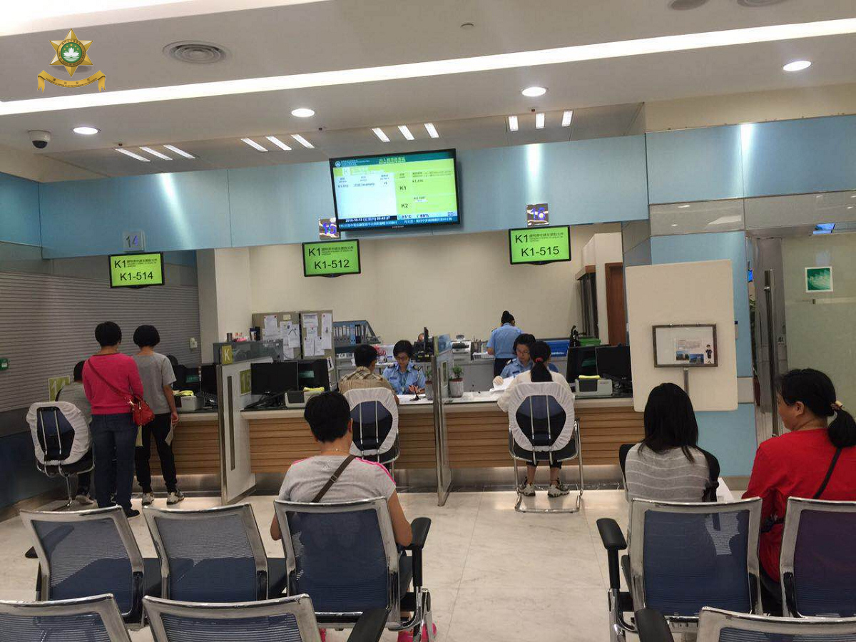 2016年1至9月期間,治安警察局政綜大樓服務專區共接待了12,376人次,主要是家務工作外僱及專業外僱辦理《外地僱員身份認別證》(俗稱藍咭)續期、領證,以及持《前往港澳通行證》(俗稱單程證)人士領取《居留證明書》,分別有4,063人次、3,713人次及3,555人次,約佔該服務總量的22%、18%及64%。同時出入境事務廳內部亦作出了優化,自本年7月起容許藍咭申請人自行選擇領證地點,至今已有2,518名申請人於北安出入境事務廳大樓完成申請後,選擇到政綜大樓領證,該項優化既照顧及方便了澳門區居民,亦疏導了出入境事務廳大樓的人潮。