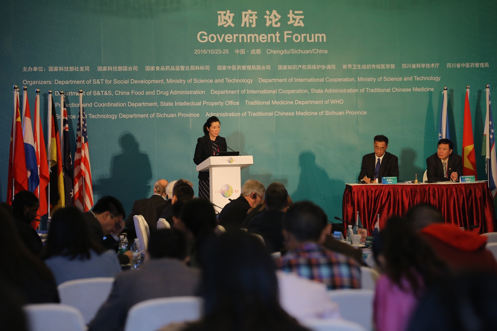 第五届中醫藥現代化國際科技大會-政府論壇(10月24-25日)在四川成都舉行,大會由科技部、四川省人民政府、國家中醫藥管理局等多部門主辦,彙聚了國家科技部、衛計委等多個相關政府部門、世界衛生組織、以及美國、荷蘭等多國藥品審評部門等60多名政府代表。全國政協副主席、農工民主黨中央常務副主席劉曉峰,國家衛生計生委副主任、國家中醫藥管理局局長王國强,科技部黨組書記、副部長王志剛等領導出席開幕式。