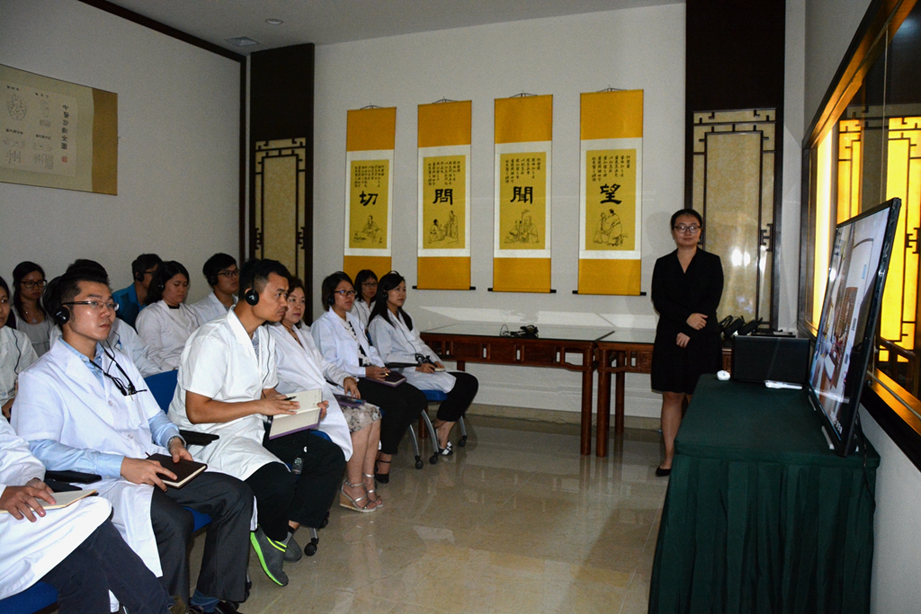 • 研習班學員通過觀摩室現場學習劉敏如教授看診