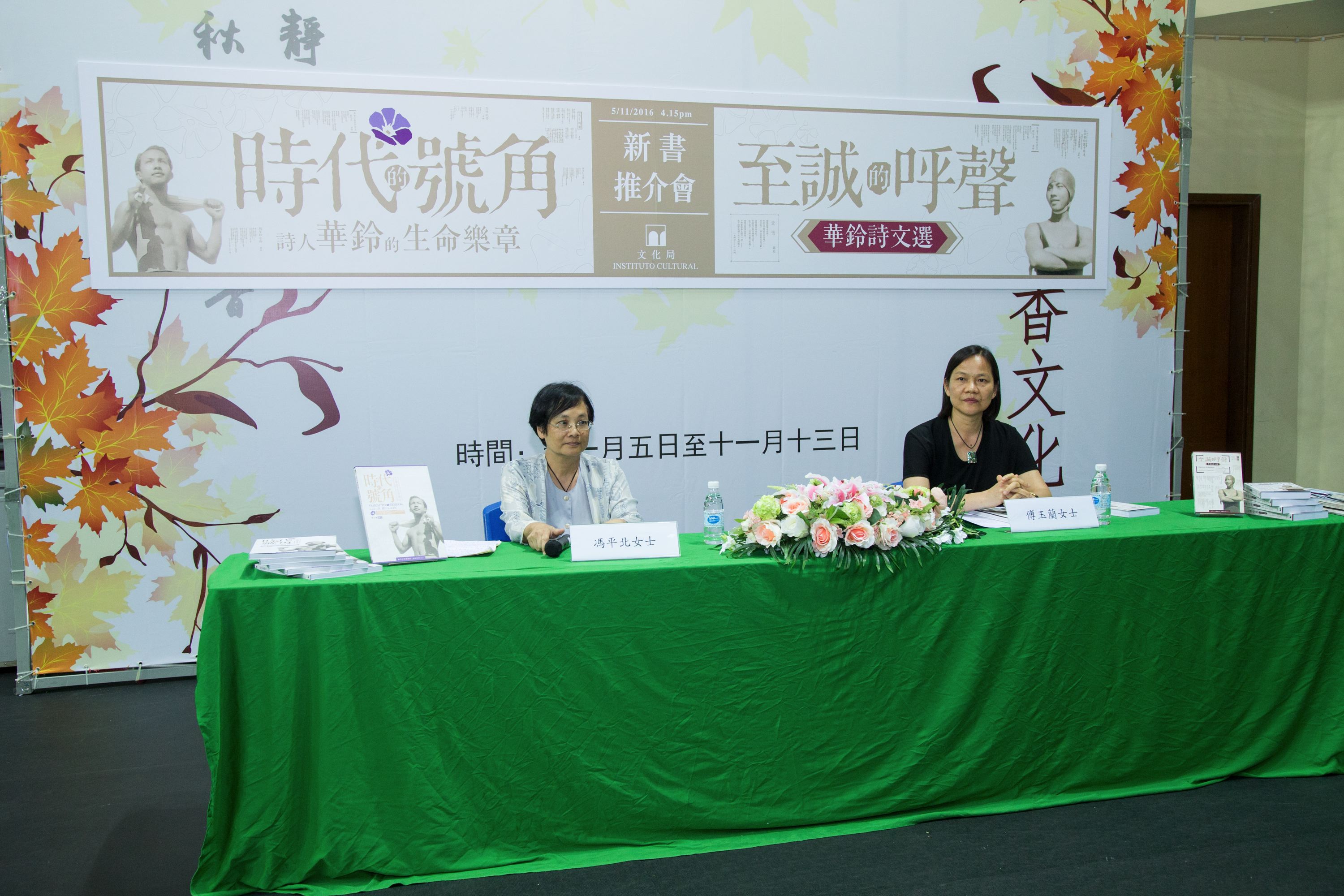 文化局於日前(十一月五日)在塔石體育館“書香文化節—2016澳門書展”舉行《時代的號角――詩人華鈴的生命樂章》及《至誠的呼聲――華鈴詩文選》新書推介會,編著者傅玉蘭及詩人華鈴女兒馮平北出席介紹兩新書内容。