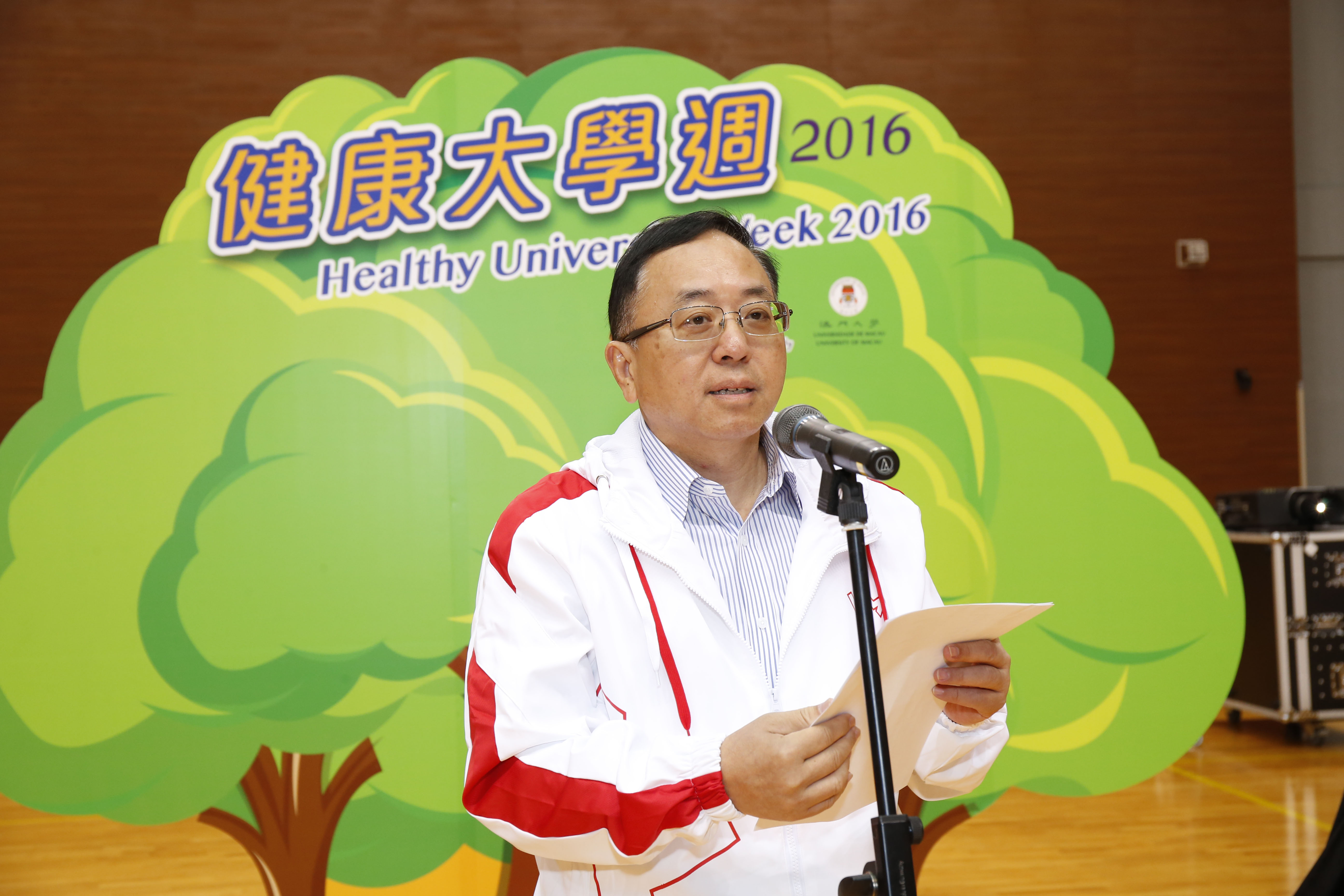 啟動儀式在澳大綜合體育館舉行,澳大副校長(學術)倪明選致詞時表示,澳大自2007年加入“亞太區健康大學網絡”成員後,通過全校師生的同心協力下,健康大學計劃由構思至現在,在健康、安全及環保方面優化了不少。回顧過去十年發展,這三方面的意識亦提高了很多,展望未來,澳大將繼續努力協助提供一個健康安全及可持續發展的優質校園環境。