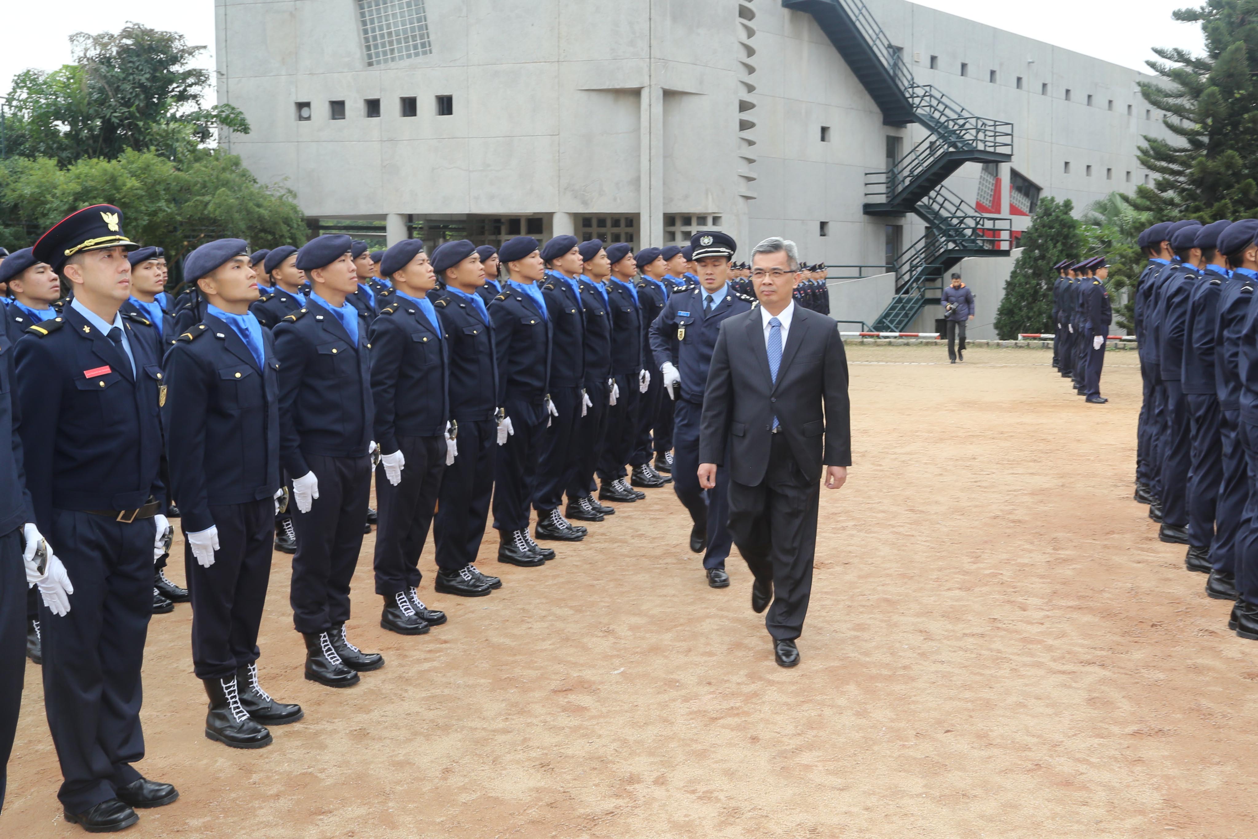 校長在致辭時表示,澳門特別行政區政府成立十六年來,伴隨著社會的經濟增長,治安環境亦越趨複雜,市民對警隊和消防的期望更不斷提高,學員們要做到律人必先律己,今後在任何工作崗位上,都必須堅守法治和廉潔奉公。保安部隊的工作非常艱鉅,但意義重大,面對危難,必須奮不顧身,勇往直前,以保障巿民大眾的生命財產為優先。要知道,學員們是保安部隊最前線的工作者,對有需求幫助之市民大眾提供最快和直接的協助,讓他們在困擾中得到即時的舒解。校長還勉勵各位學員,在面前漫長的道路中,要以訓練期間同樣的鬥志,不畏困難、不屈不撓的精神,戰勝未來大大小小的挑戰。