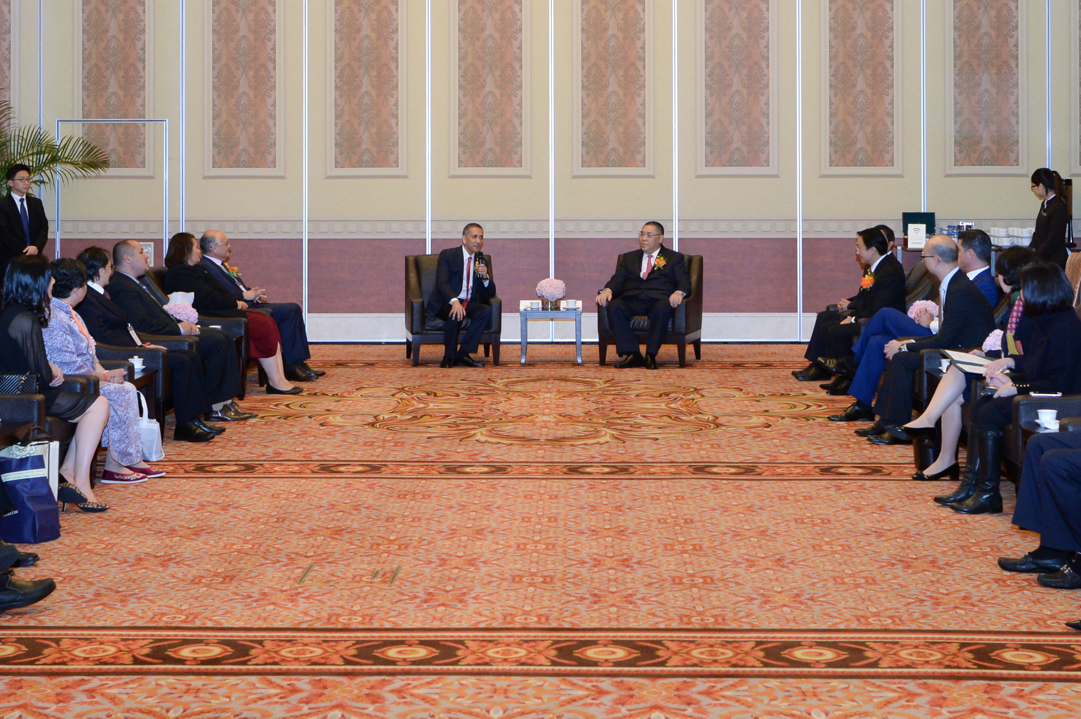 行政長官在會面中,首先代表澳門特別行政區政府歡迎旅居海外的土生葡人回澳共聚,並祝願今屆土生葡人社群聚會圓滿成功。他表示,時間過得很快,3年一次的聚會又在本澳舉行,各地的土生葡人可藉此機會回到家鄉,在澳門與朋友相聚,還可以共謀發展。