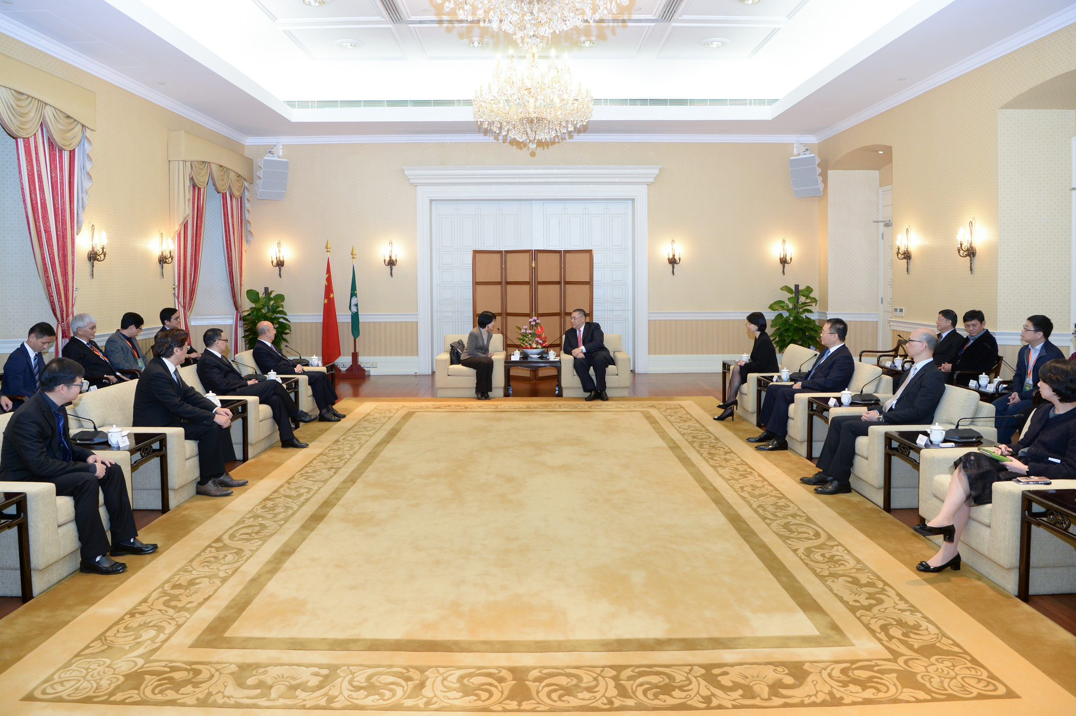 行政長官崔世安今(28)日在政府總部會見澳門全球傳媒產業發展大會與會代表,雙方就澳門的發展情況及新媒體發展等問題交流和討論。