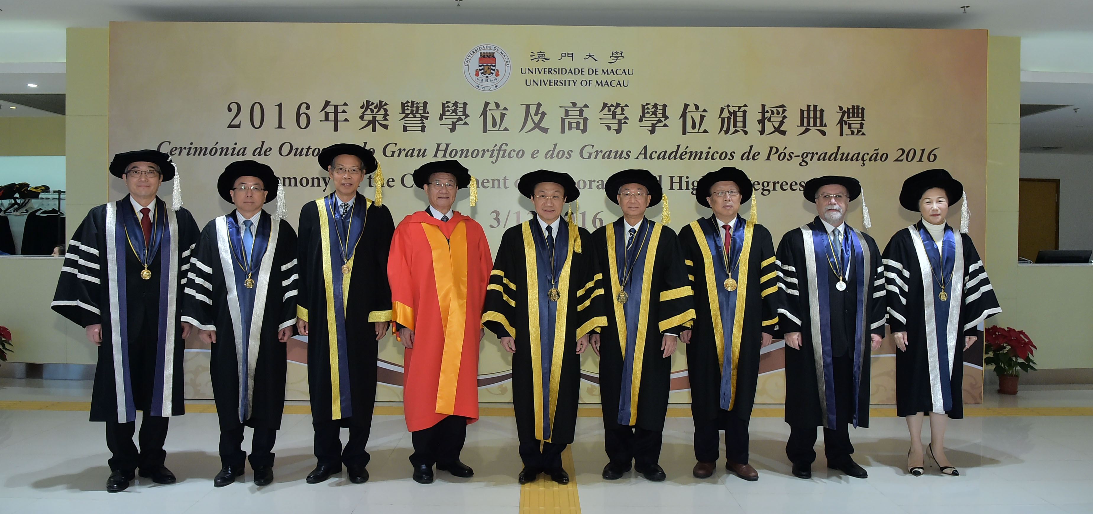澳門大學今(3)日舉行2016榮譽學位及高等學位頒授典禮,向知名教育家謝志偉博士頒授榮譽社會科學博士學位,以表彰他在專業領域與高等教育的成就,以及對社會作出的卓越貢獻。