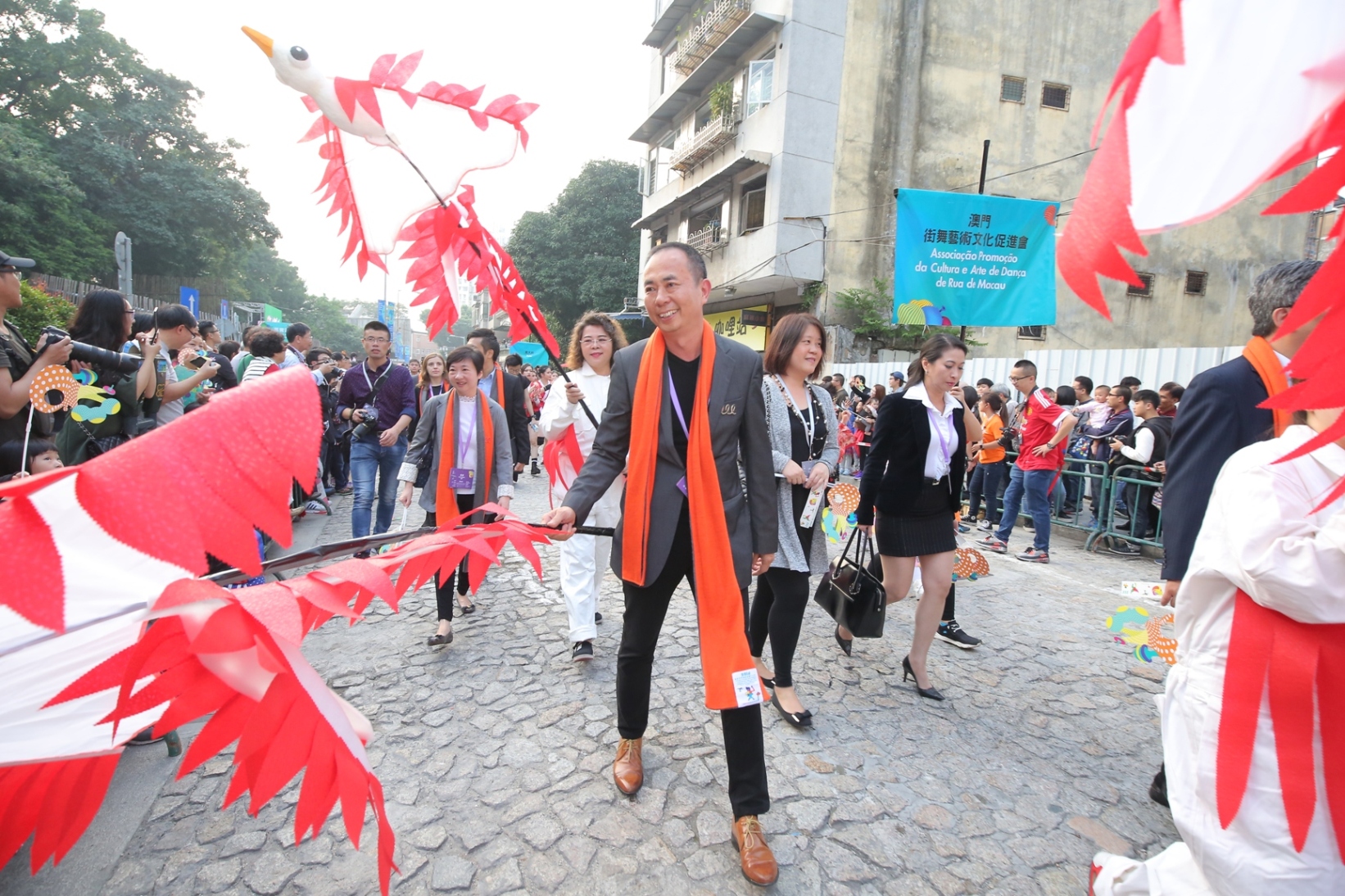 澳門特別行政區政府社會文化司司長譚俊榮、中央人民政府駐澳門特別行政區聯絡辦公室文化教育部副部長浦海龍、外交部駐澳門特別行政區特派員公署辦公室主任楊世俊、烏拉圭駐華大使館大使Juan Fernando Lugris Rodriguez、秘魯駐香港及澳門總領事館總領事Sergio Manuel Avila Traverso、西班牙駐香港總領事館總領事代表署理總領事Avelino Busto Cornejo、厄瓜多爾共和國駐廣州領事館總領事代表Carlos Lopez、葡萄牙駐澳門及香港總領事館總領事代表Clara Pacheco de Oliveira、智利駐香港及澳門總領事館總領事代表Yip Hong Ting, Jacqueline、墨西哥駐香港及澳門總領事館領事Beatriz Eugenia Nava Dominguez及澳門特別行政區政府文化局局長吳衛鳴主持大巡遊開幕式。