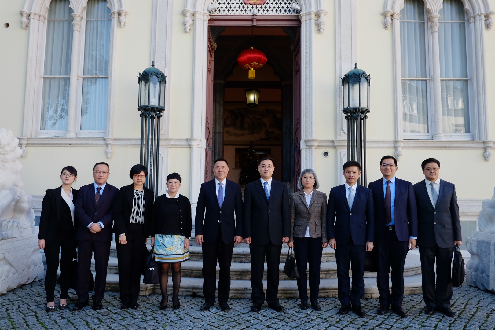 於12月6日,梁維特拜訪了中國駐葡萄牙共和國特命全權大使蔡潤,在會上,梁維特向蔡大使介紹了澳門的最新經濟發展情況,尤其是“一中心、一平台”的建設方面。梁司長還特別提到,隨著中國-葡語國家經貿合作論壇(澳門)第五屆部長級會議於10月順利舉行,澳門正進一步推進中葡方面的合作,其中特區政府正積極推進澳門打造成為中葡金融服務平台、建設葡語系國家人民幣清算中心、中葡青年創新創業交流中心等的工作。蔡大使向代表團一行介紹了中國與葡萄牙兩國關係的最新情況。近年,中國企業在葡萄牙的投資持續增加,而事實上,相對於其他歐洲國家,葡萄牙對於外來的投資是持較開放的態度。投資所涉及的範疇包括能源、醫療、保險、銀行等不同的領域。蔡大使還補充指出,希望未來可以進一步加強中國投資者在產能合作、海洋合作、初創、中醫藥、旅遊、教育等領域上與葡萄牙企業的合作。而預計,隨著中葡直航於明年中正式實現,兩地的交往與合作將會更緊密。最後,蔡大使肯定澳門在中葡關係之間所發揮的積極作用。