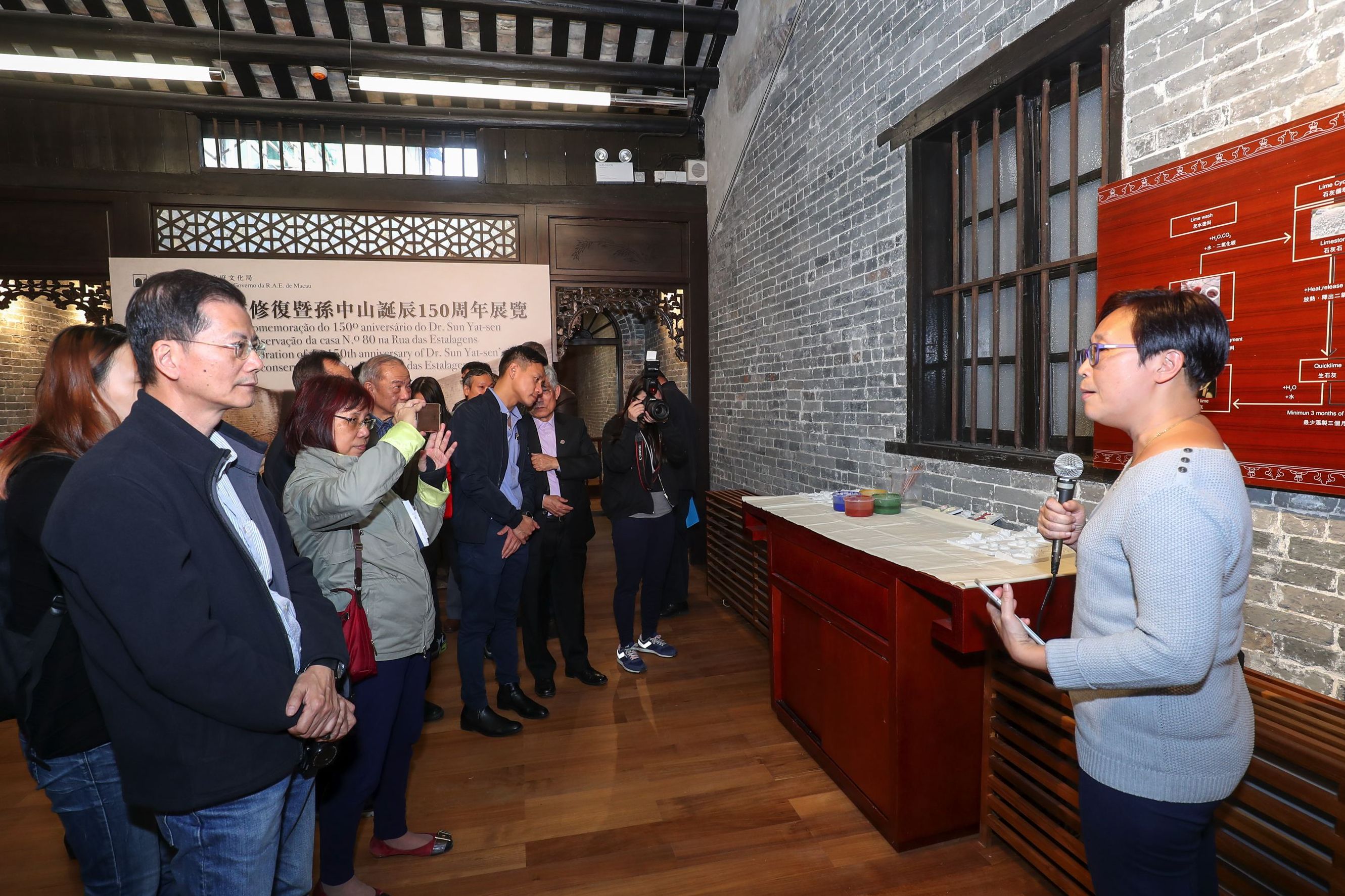 文化局於十二月十五日(星期四)下午三時三十分在草堆街80號舉行“草堆街80號修復暨孫中山誕辰150周年展覽”開幕式,由文化局局長吳衛鳴、中山市翠亨村孫中山故居紀念館館長黃健敏、澳門歷史學會會長陳樹榮、資深教育工作者劉羨冰及澳門草堆六街區坊眾互助會盧定淦理事長主禮,其他出席的嘉賓還包括文化遺產委員會委員、專家學者及市民等,場面熱鬧。