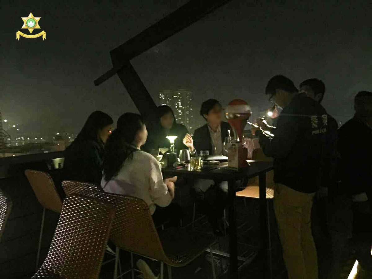 行動中,治安警察局人員於南灣某商業中心頂層21樓餐廳内進行稽查時,發現有卡拉OK房及再可上天台樓層作餐飲場所,懷疑擴張營業場所,涉嫌在牌照許可範圍外營運,以及未能出示有關卡拉OK牌照,因此,治安警察局將就有關事件繕立實況筆錄,交有關權限部門跟進。