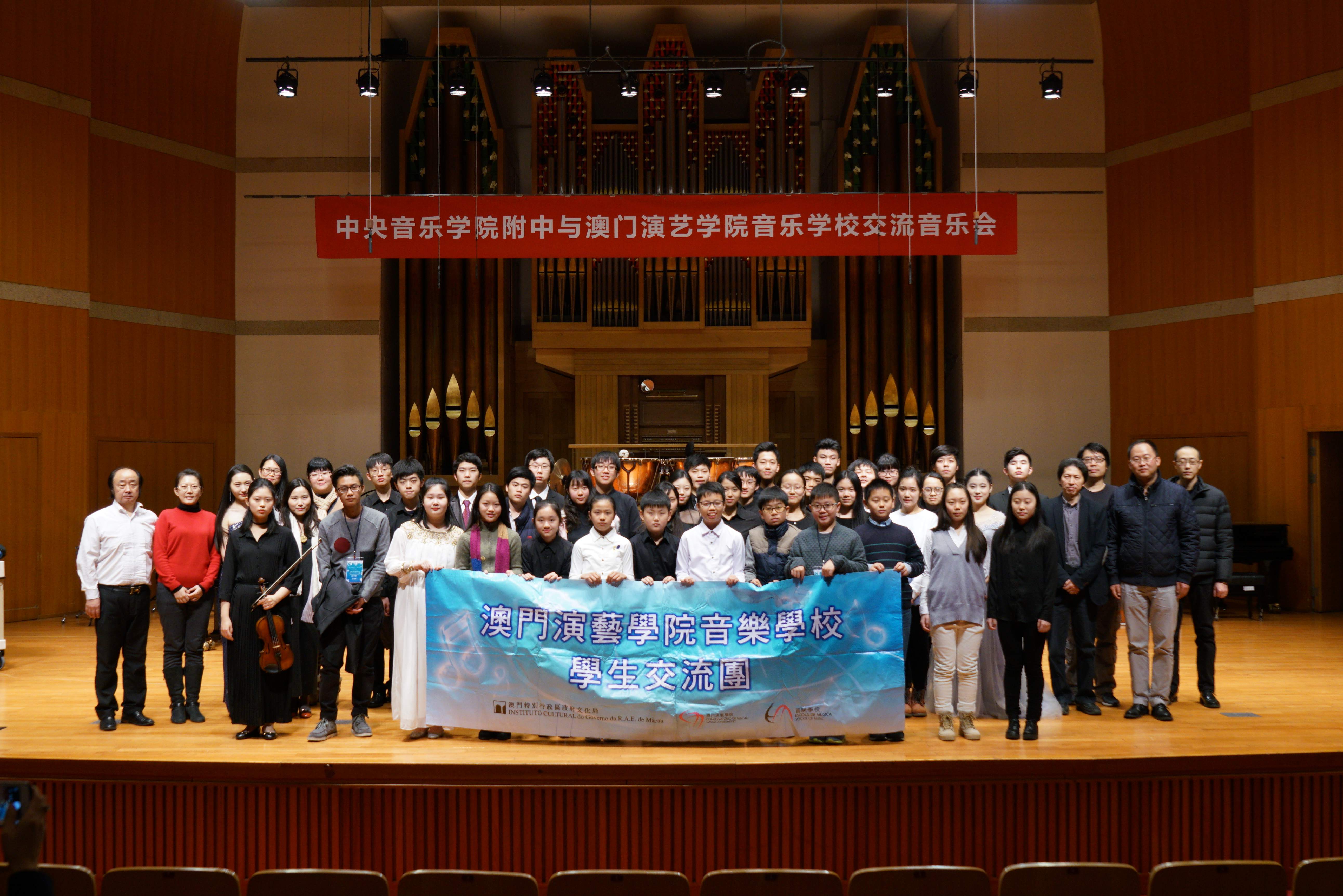 由文化局澳門演藝學院音樂學校開辦的全日制音樂技術課程,早前組織“學生演出交流團”一行三十一人前往北京,與課程合辦機構中央音樂學院附屬中等音樂學校進行一系列音樂學術交流活動。