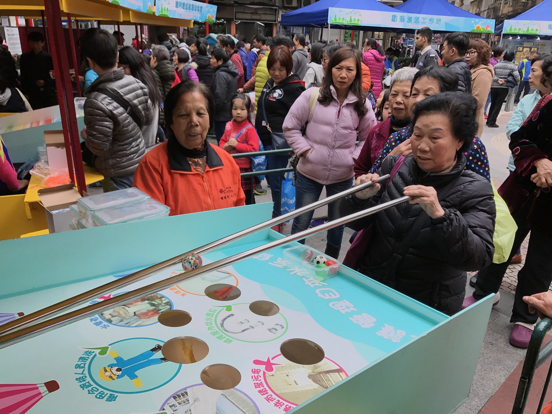 今日下午二時半至五時,小組假三盞燈休憩區舉辦“社區節水巡禮”活動,現場除了展出節水器具以及樓宇自來水系統模型,還有多個以節約用水、認識鹹潮和維護管理樓宇自來水系統為主題的攤位遊戲和工作坊,更設有“海安全‧水優質”真人版遊戲棋,遊戲獎罰分明、路線峰迴路轉,玩樂之餘還可以學到水資源知識和節水方法,吸引了眾多小朋友參與。此外,深受小朋友喜愛的“威水超人”更在活動現身和大家玩節水遊戲和派禮物,吸引了眾多家長和小朋友踴躍參與。