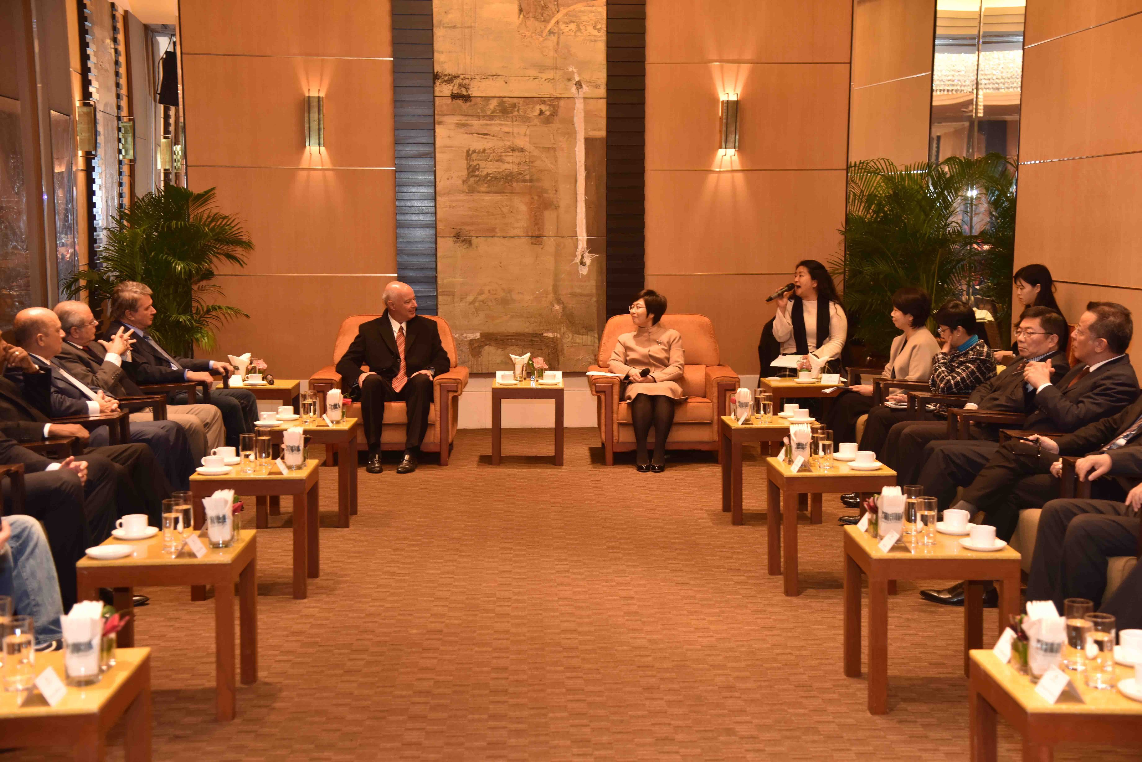 1月16日,陳海帆司長聯同多個政府部門的負責人,代表澳門特區政府與由帕索斯主席率領的巴西眾議院代表團會面,並宴請代表團一行。陳司長首先歡迎代表團訪澳,表示中巴兩國建交40多年來,雙方建立了友好合作關係。2016年10月,在澳門舉行的“中國與葡語國家經貿合作論壇”第五屆部長級會議,確定了2017年至2019年中國與葡語國家經貿合作方向、合作領域和合作方式。基於歷史的淵源,澳門在使用葡語、法律體系與葡語國家有相近之處,與葡語國家亦長期保持友好的關係。2016年,巴西與澳門的雙邊貿易額較2015年增加了21.7%,而第21屆澳門國際貿易投資展覽會則有13間巴西企業參展。她相信,在未來的日子,隨著澳門“一個平台”角色的加強,雙方在經濟、旅遊等方面必會有更緊密的合作關係,而行政法務範疇目前正為與巴方開展司法合作進行前期的準備工作。