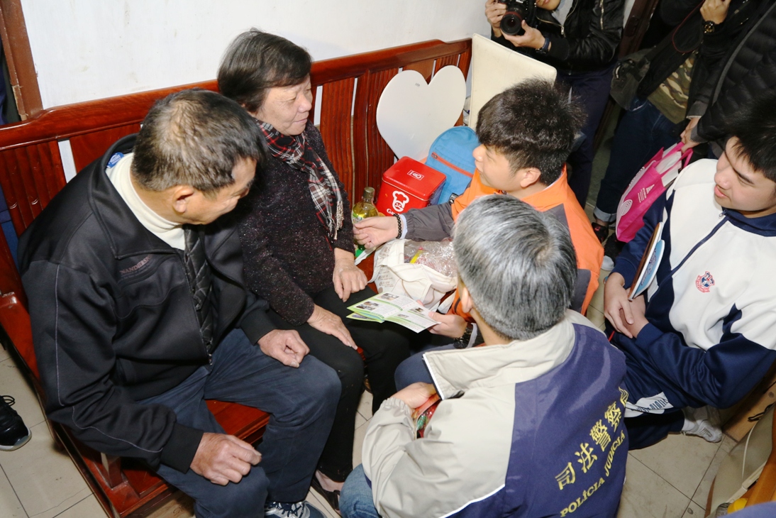 農曆新年前夕,司法警察局組織 “滅罪小先鋒種子計劃” 學員進行關愛獨居長者春節送暖活動,前往北區探訪獨居長者,送上新春福包和節日祝福,細心提醒長者們歲晚期間注意做好防罪措施。一班滅罪小先鋒學員更發揮朋輩影響力,發動其就讀學校的同學們一起參與是次探訪活動,向青少年宣揚關愛社會、服務社會的正面訊息。