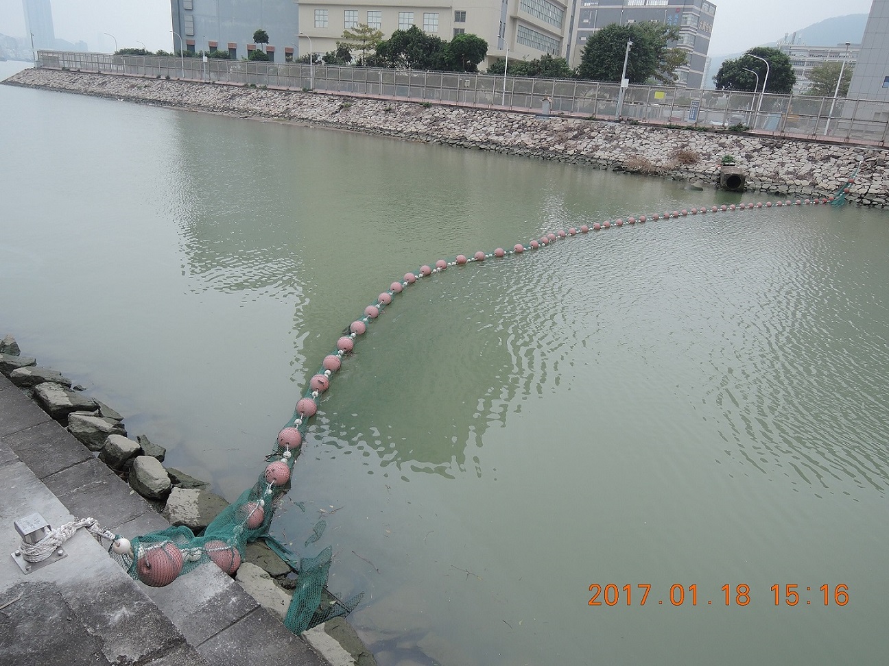 環境保護局經與內地相關部門協調後,已於本月中旬完成在鴨涌河河口設置攔魚網,以防若出現死魚時會隨潮汐飄入鴨涌河,減低對環境的影響。長遠會透過建設青茂口岸的契機,一併徹底整治鴨涌河。