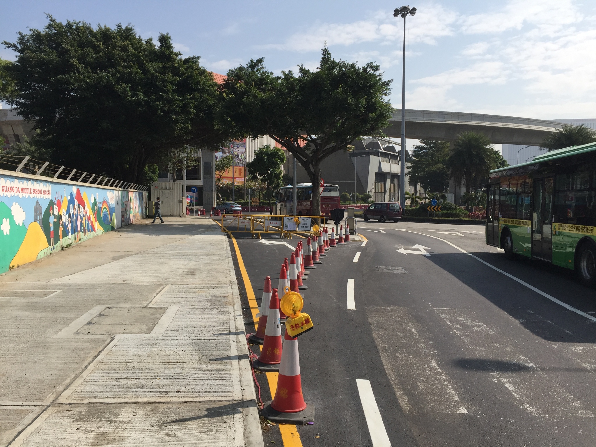 交通事務局為疏導奧林匹克遊泳館圓形地之交通,已於東亞運大馬路新增一條左轉入運動場道之車道,並將於明日(24日)正式開通,以便車輛可直接從該車道前往氹仔中心區,無須進入奧林匹克遊泳館圓形地,減少阻塞。