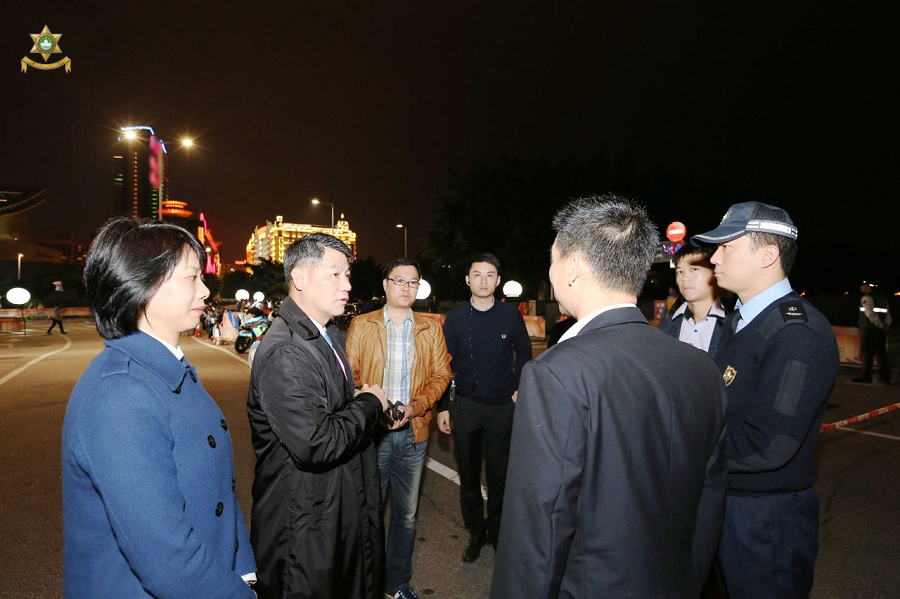 除夕當晚,治安警察局梁文昌局長及黃子暉副局長帶領多位治安警察局主管人員實地走進多個人群聚集點巡視及瞭解各項安保工作情況,務求為廣大市民提供更快捷、便民及優質服務,使大眾平安歡度春節。