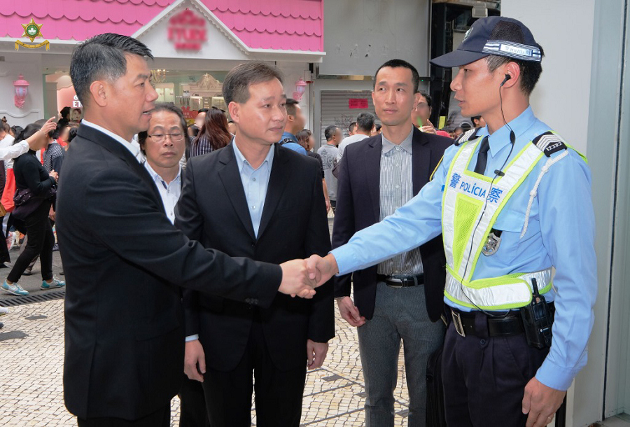 春節期間,警察總局馬耀權局長在治安警察局梁文昌局長、羅偉業總局長助理、吳錦華副局長、黃子暉副局長和多名主管陪同下,先後分別前往關閘邊境站、特警隊總部和交通廳等部門視察,並前往實施人潮管制措施的大三巴牌坊及新馬路一帶,巡視市面人流及檢視人車分流措施的成效。