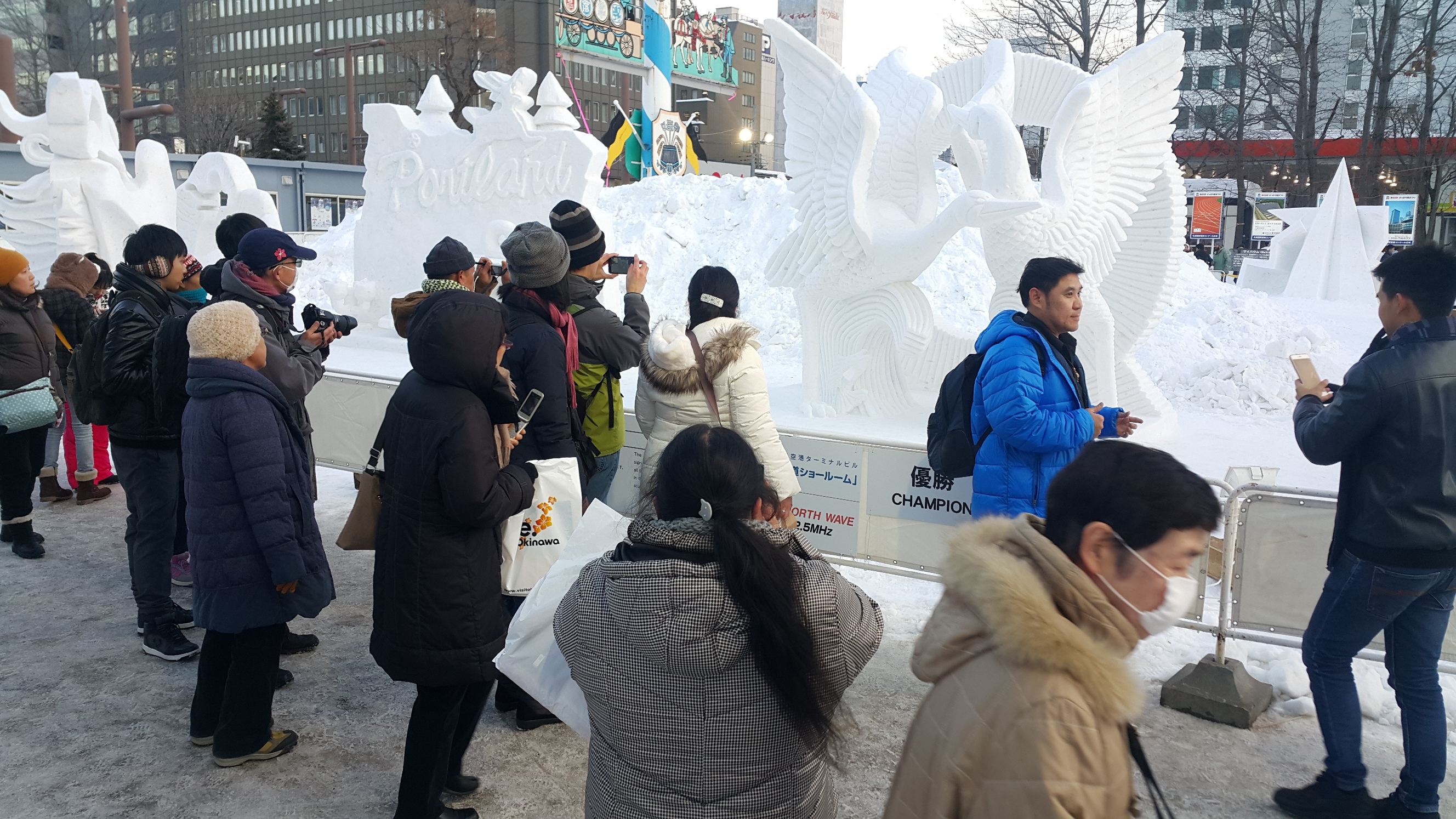 “札幌冰雪節”是日本的冬日盛典,每年吸引超過二百萬名日本市民及國際遊客參加,獲得全球媒體廣泛報導。“第44屆國際雪雕比賽”為“第68屆札幌冰雪節”的重點活動之一,吸引來自拉脫維亞、夏威夷、波蘭、新加坡及澳門等十一個不同國家及地區的隊伍參賽,各隊於2月5至8日期間在大通會場11丁目公開製作雪雕,比賽結果於今早(9日)在現場公佈。