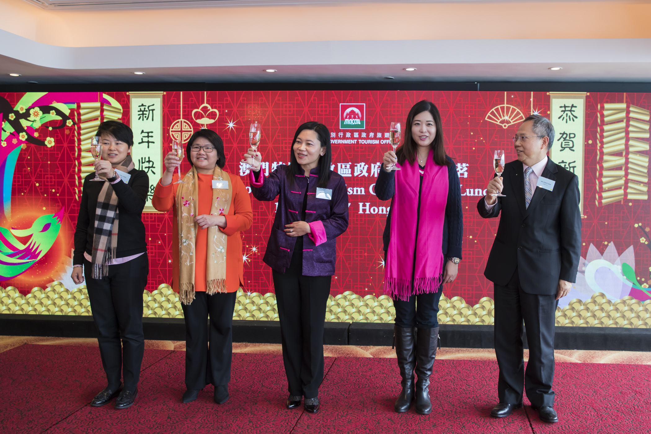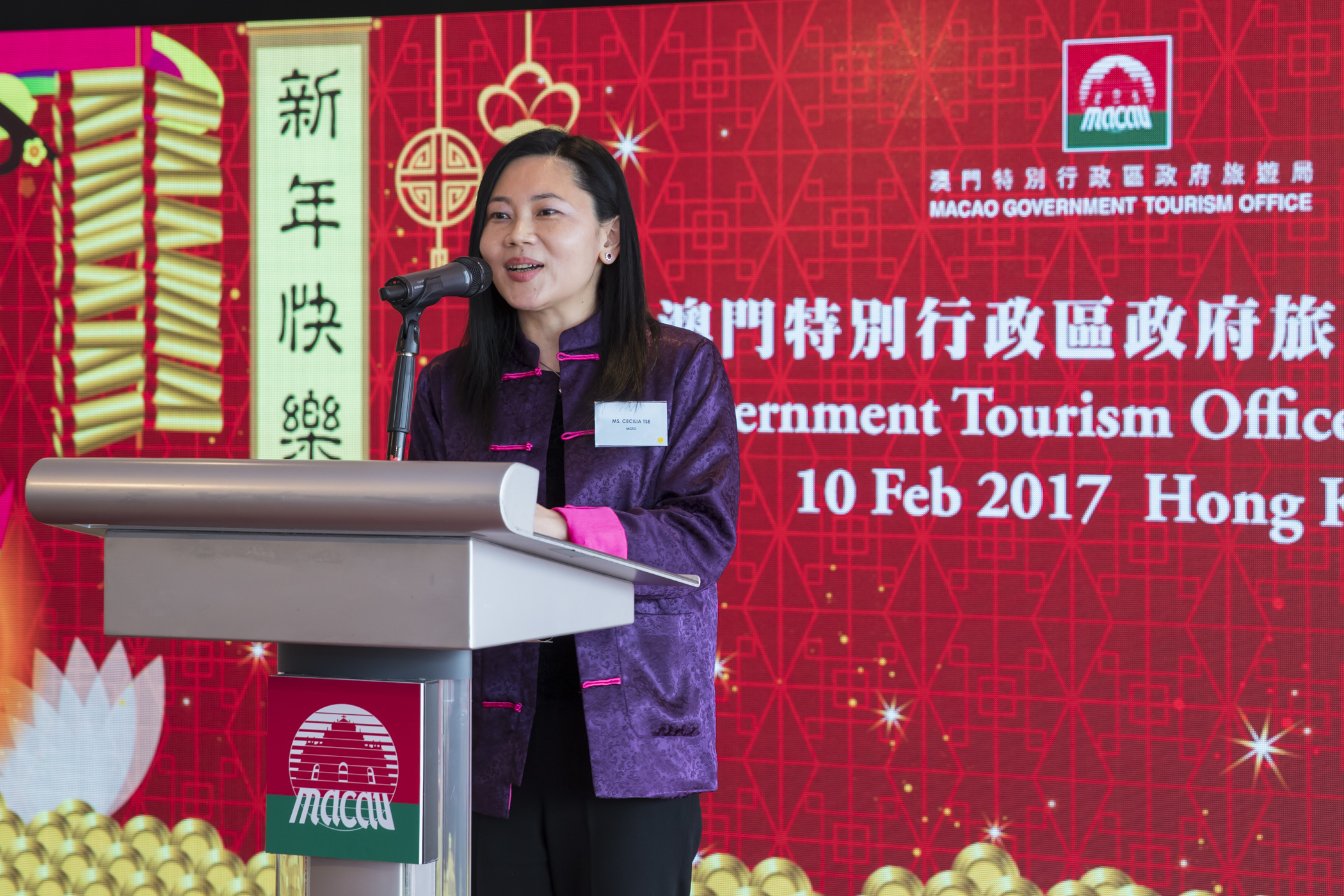 副局長謝慶茜在午宴上感謝香港業界對澳門旅遊業的支持,並祝願所有嘉賓新一年業務蒸蒸日上,旅遊業繁榮發展。澳門2016年的入境旅客數字逾三千萬人次,而香港是澳門的第二大客源市場,去年有超過六百四十萬香港旅客到訪澳門,對比2015年微跌百分之一點八,而酒店及公寓住客則上升百分之十七點八。