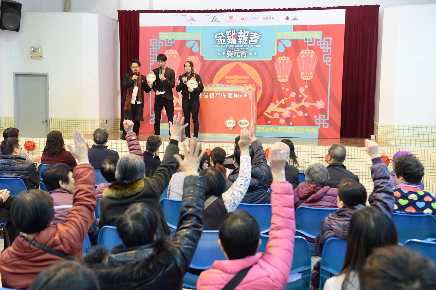 活動上,透過話劇表演、互動遊戲及問答抽奬等形式,向各社會房屋住戶傳達承租人應遵守的義務等訊息,住戶反應踴躍;同時,設有歌唱表演、派發福袋及新春茶點招待。