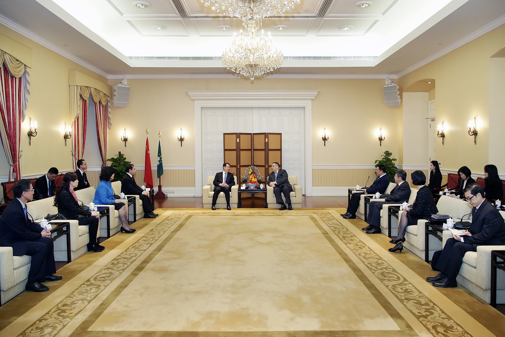 參加會面的包括行政長官辦公室主任柯嵐、行政長官辦公室顧問高展鴻和林媛,以及珠海市委常委、市委秘書長吳軾、市委常委、橫琴新區黨委書記劉佳和副市長蘆曉鳳等一行。