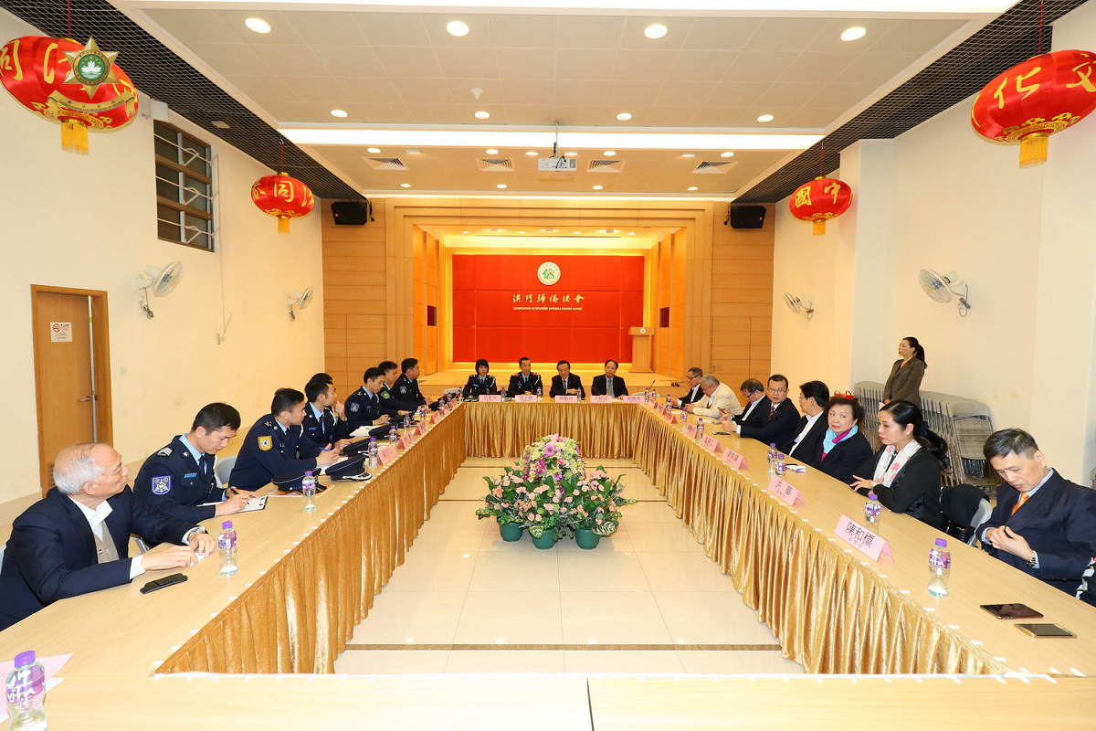 當日下午四時,由治安警察局一行十人,在副局長黃子暉副警務總監、行動廳廳長伍素萍警務總長及公共關係處處長趙崇遠副警務總長帶領下,到訪澳門歸僑總會,受到澳門歸僑總會會長劉藝良、理事長王彬成等代表親切接待。