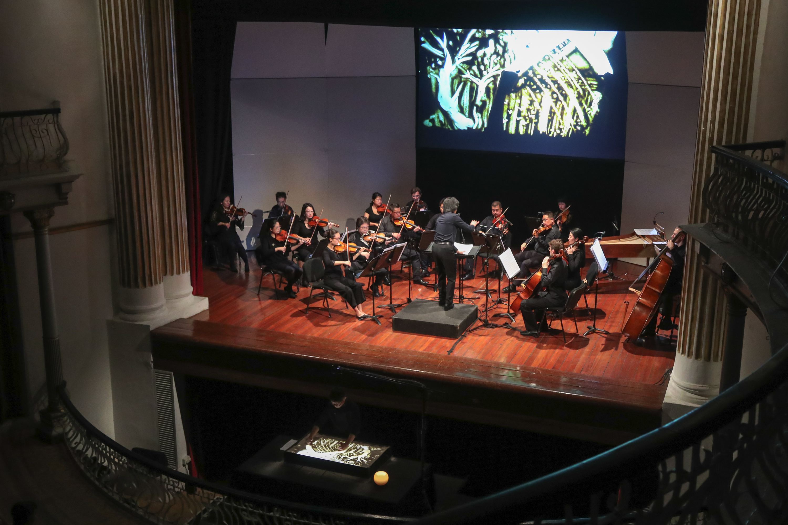 文化局澳門樂團特別製作《週末音樂館——沙畫留聲》日前(三月四日)於崗頂劇院上演,特邀香港著名沙畫家馬穎章合作演出,馬氏一雙靈心巧手,以動態流沙配上古典音樂,呈現了一場以沙畫入樂的精緻演出,樂迷紛紛感覺驚艷。